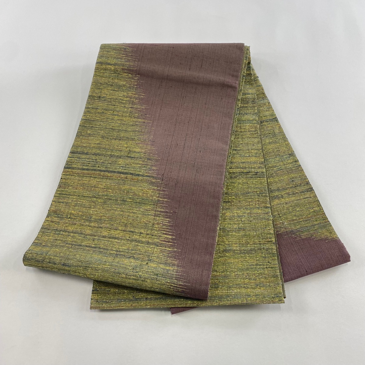 | 袋帯 美品 秀品 霞 幾何学模様 金糸 茶緑色 お太鼓柄 正絹 【中古】 |
