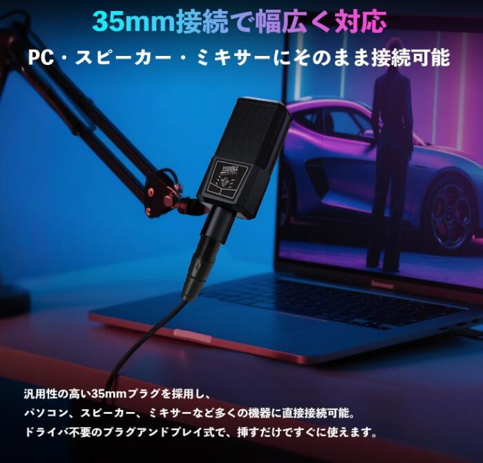 コンデンサーマイク PC用マイク パソコンマイク microphone 全指向性 高感度 35mm大口径 録音