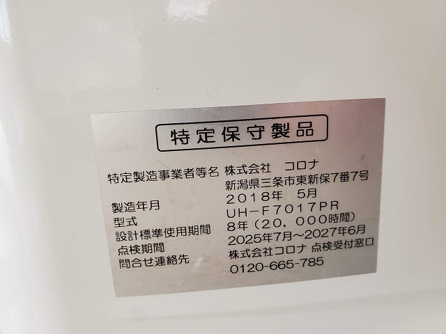 [2067]札幌 引き取り歓迎 中古 CORONA コロナ FF式 密閉式 石油ストーブ 床暖 UH-F7017PR 2018年製 木造18畳 コンクリート29畳まで
