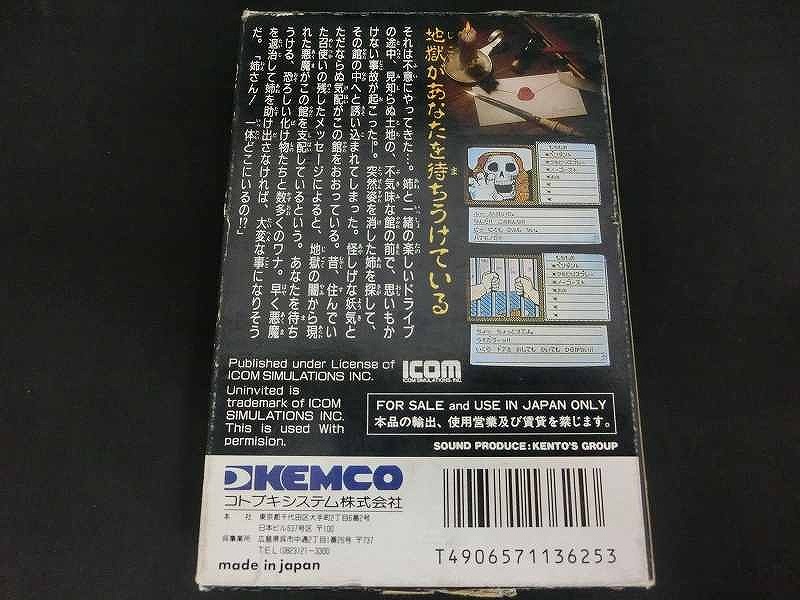 商品名ファミコンソフト 悪魔の招待状 KSC-UV