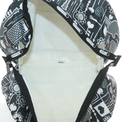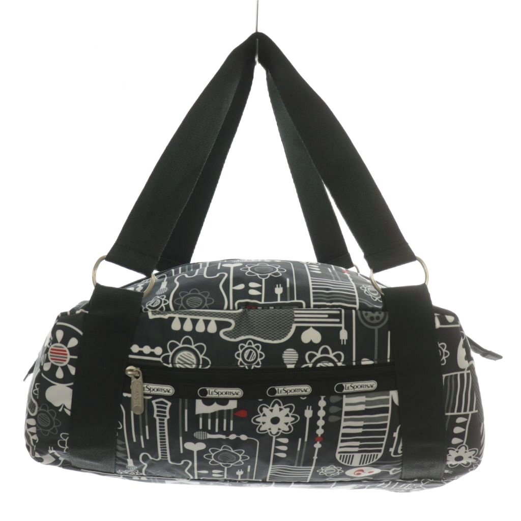レスポートサック LesportSAC ボストンバッグ 旅行バック トート ナイロン 楽器柄 ロゴ 総柄 黒 ブラック 白 ホワイト
