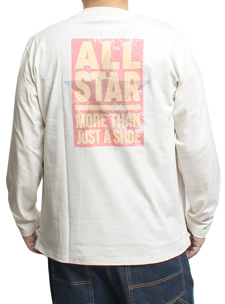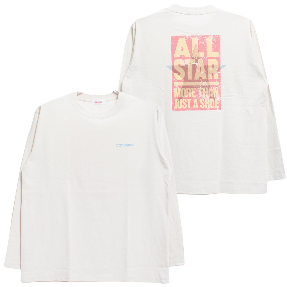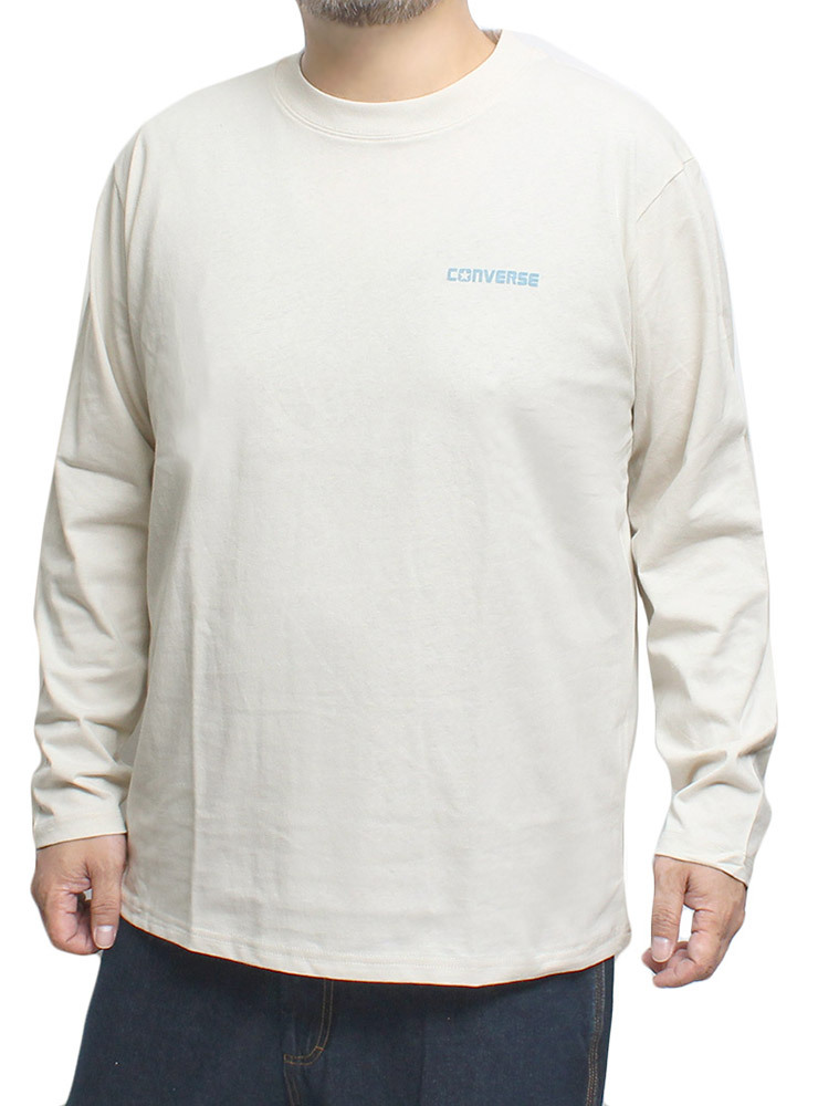 | 商品名 | 【新品】 5L アイボリー コンバース(CONVERSE) 長袖Tシャツ メンズ 大きいサイズ ピグメント風 ロゴ プリント クルーネック カットソー |
