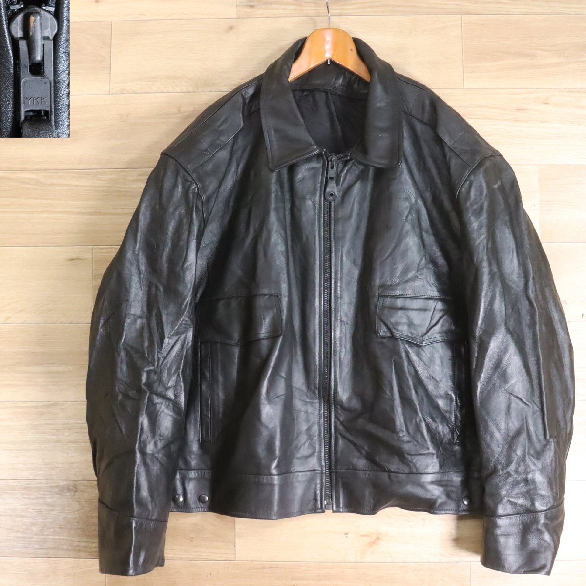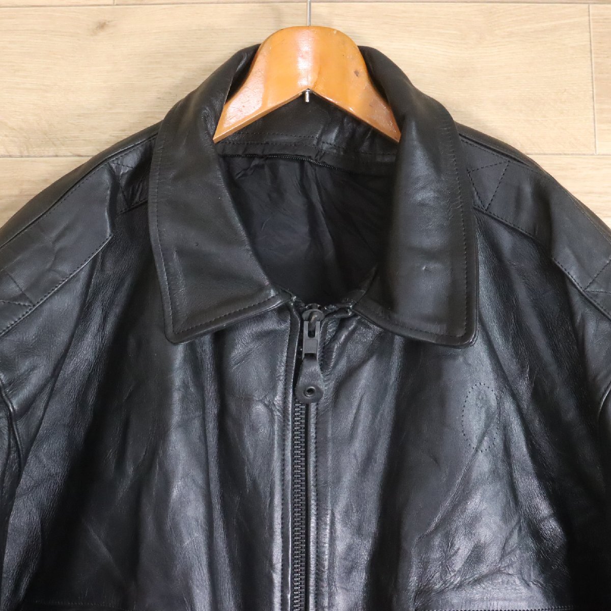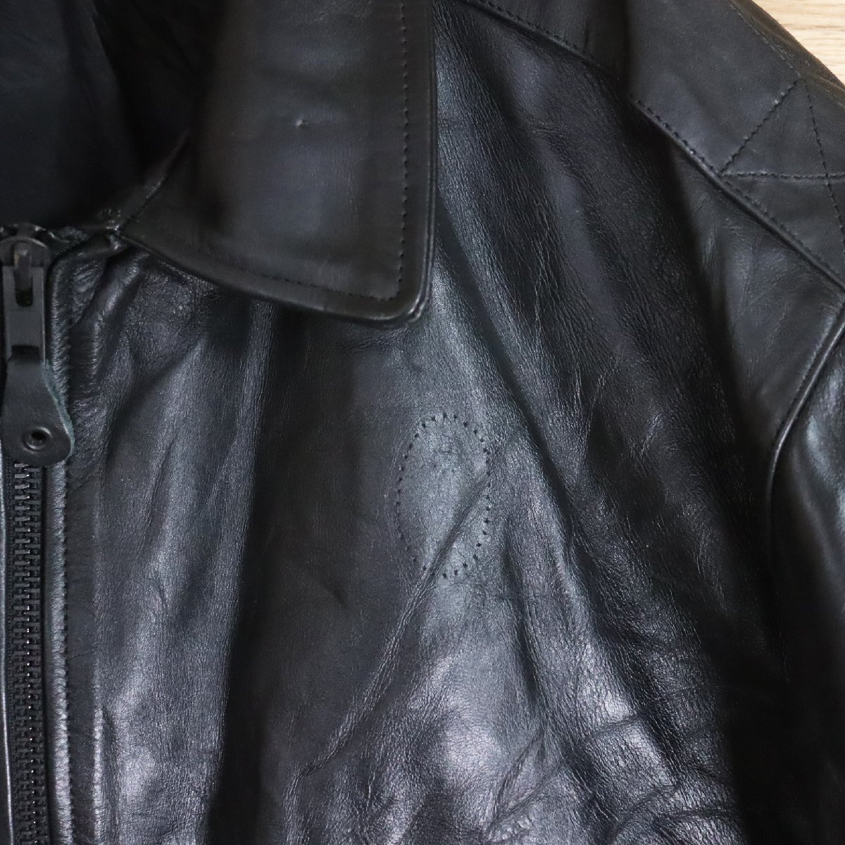 ?9D/Y6.5-8 アメリカ古着 レザーブルゾン 本革 レザージャケット 牛革 革ジャン 皮ジャン ボンバージャケット メンズ ブラック