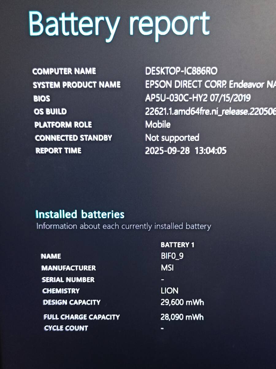 win11ライセンス認証画面、battery reportは使用していた時の画像です。