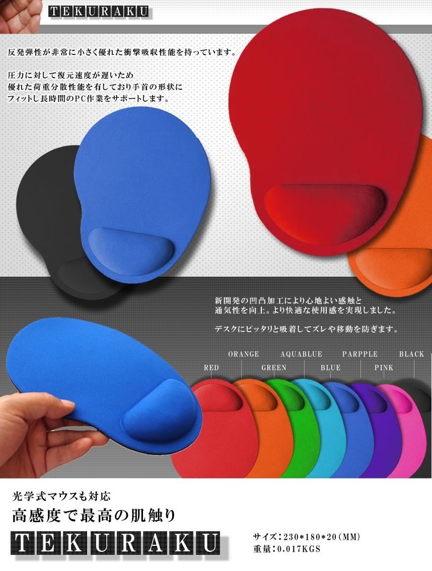 | 低反発 リストレスト付き マウスパッド ブルー |