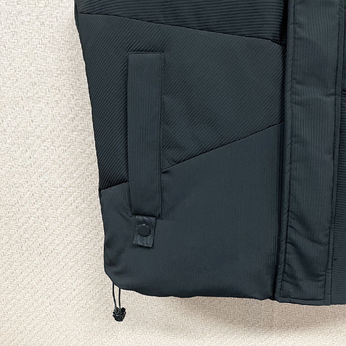 充填物にはダックダウン90%をたっぷり入れることで、保温性に優れ、寒い季節でもしっかりと体を温めてくれます。裏地には滑らかで肌触りの良い生地を採用しており、インナーとの摩擦が少なく、着脱もスムーズです。