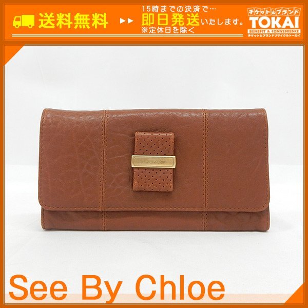 ★SE03■ [送料無料/中古品] See By Chloe シー バイ クロエ リボン 二つ折り長財布 ブラウン レザー