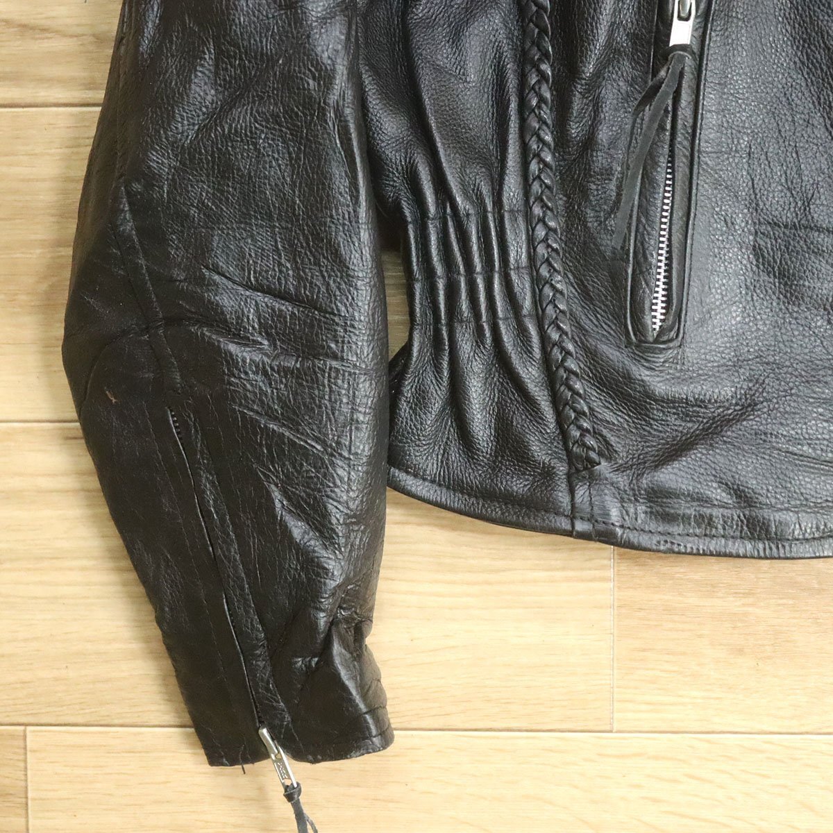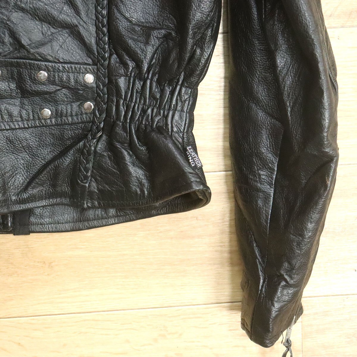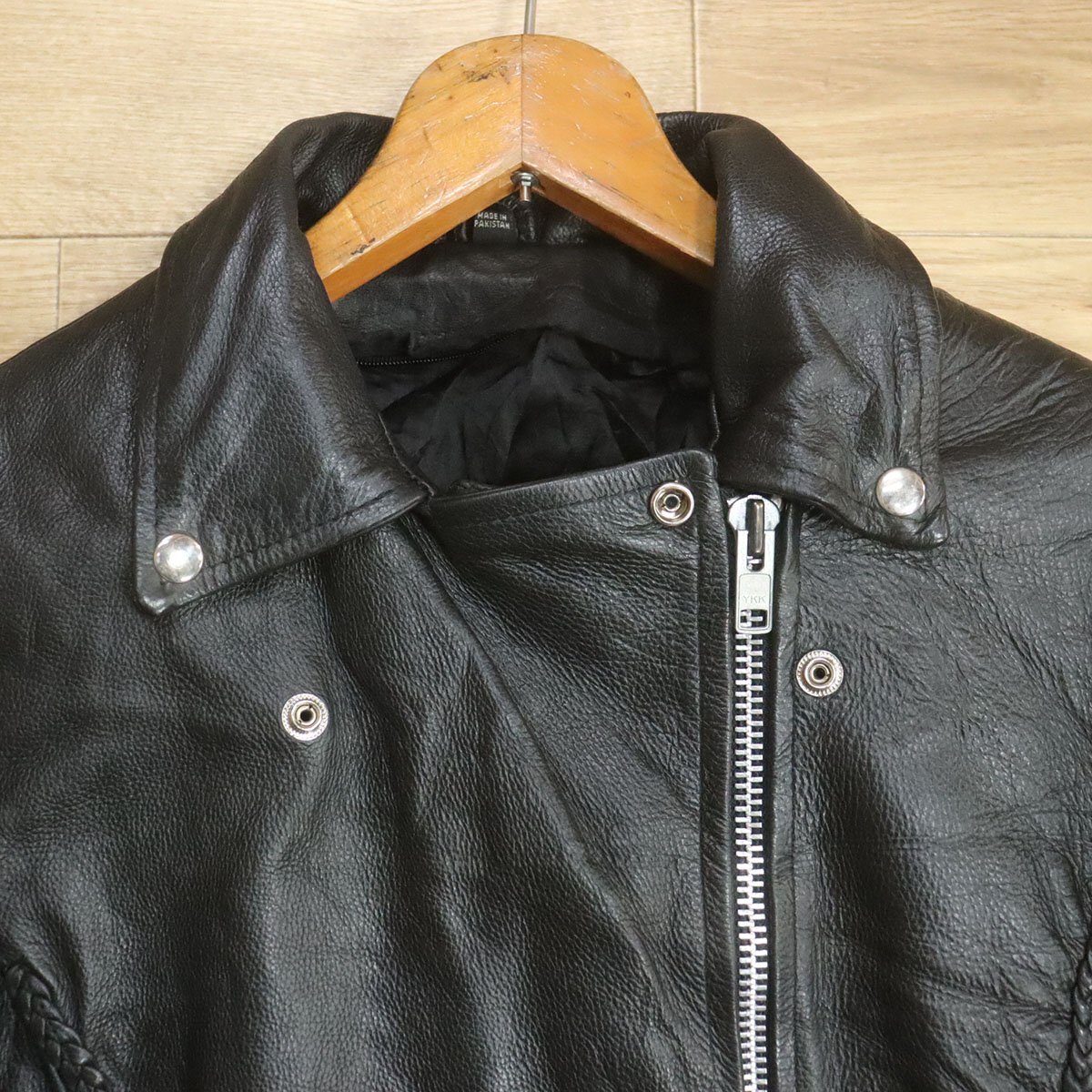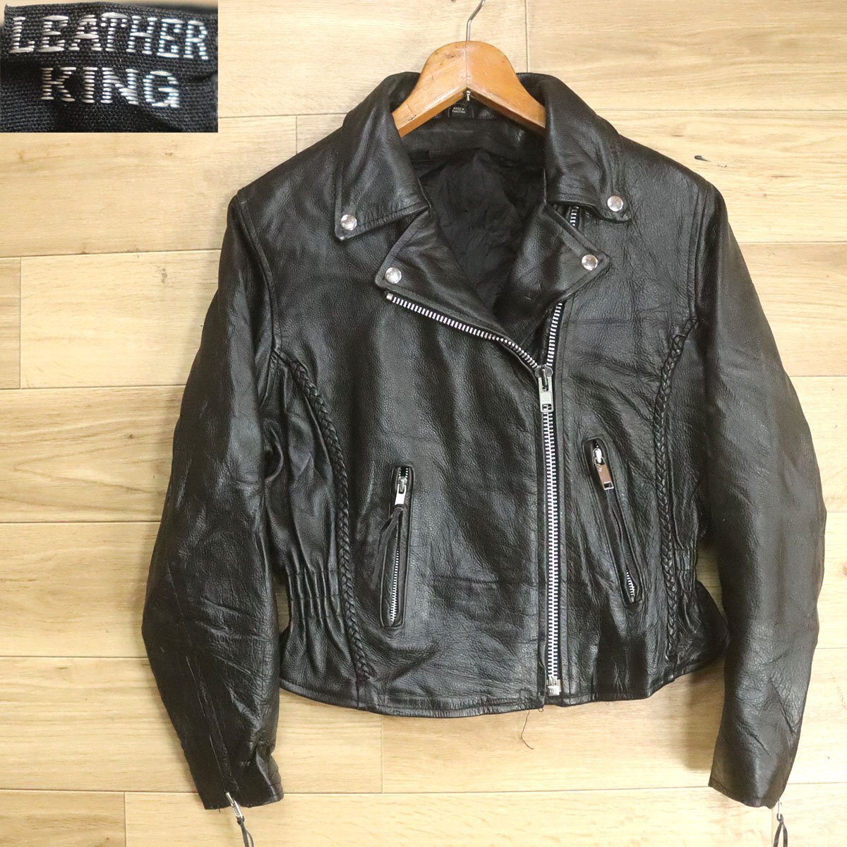 ?8K/S6.11-4 LEATHER KING ダブルライダースジャケット 本革 レザージャケット 革ジャン 皮ジャン レザーブルゾン ブラック