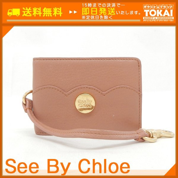 ★SE02■ [送料無料/中古品] See By Chloe シー バイ クロエ 二つ折り カードケース パスケース 定期入れ ピンク ストラップ付き