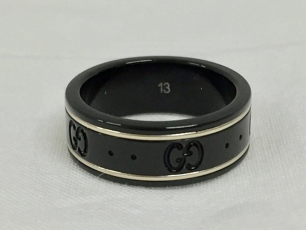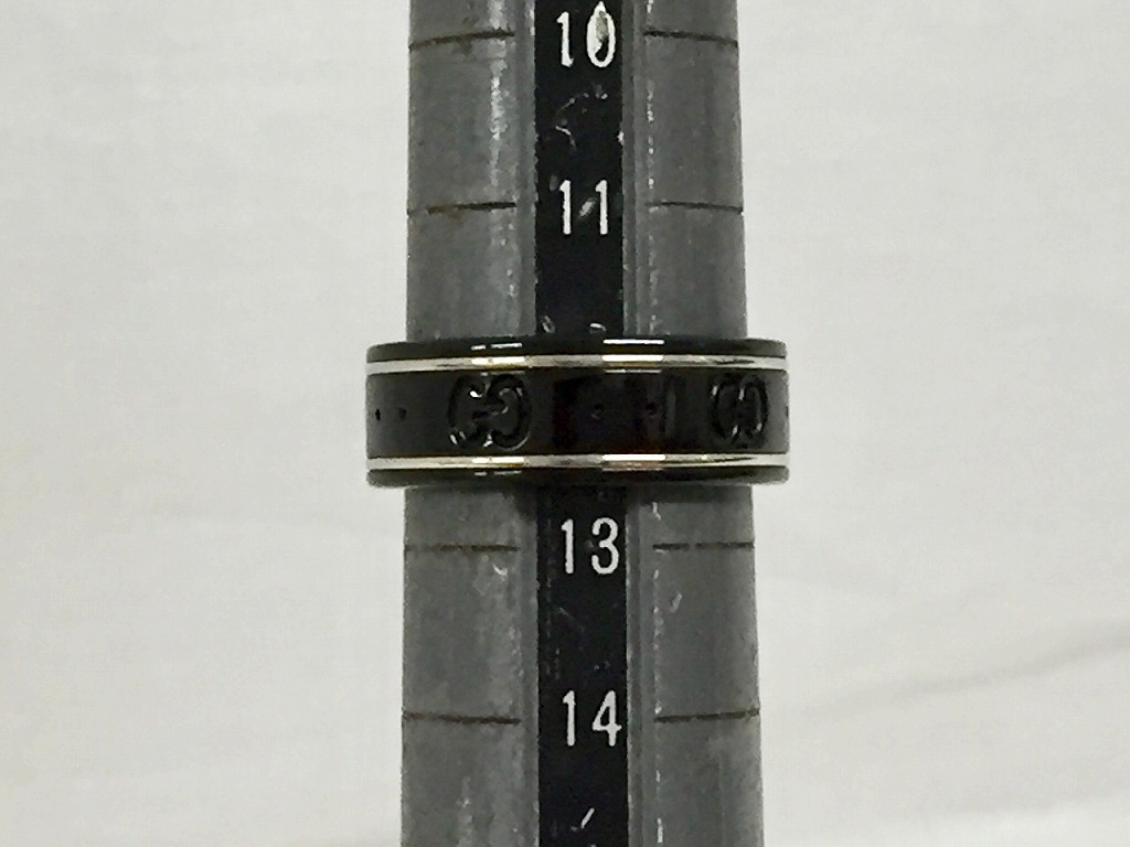 期間限定セール グッチ GUCCI アイコン シンバンド リング 指輪 12.5号 ブラック/シルバー 225985
