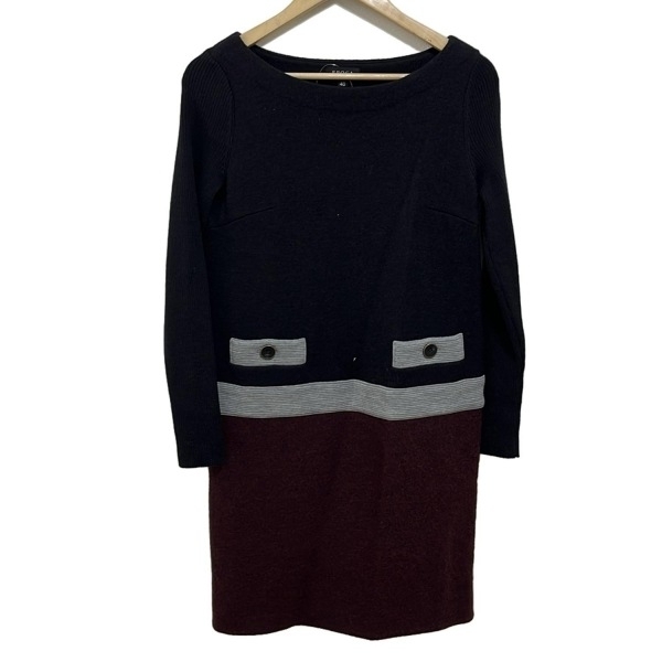 エポカ EPOCA サイズ40 M - ダークグレー×ボルドー×グレー レディース クルーネック/長袖/ひざ丈 ワンピース