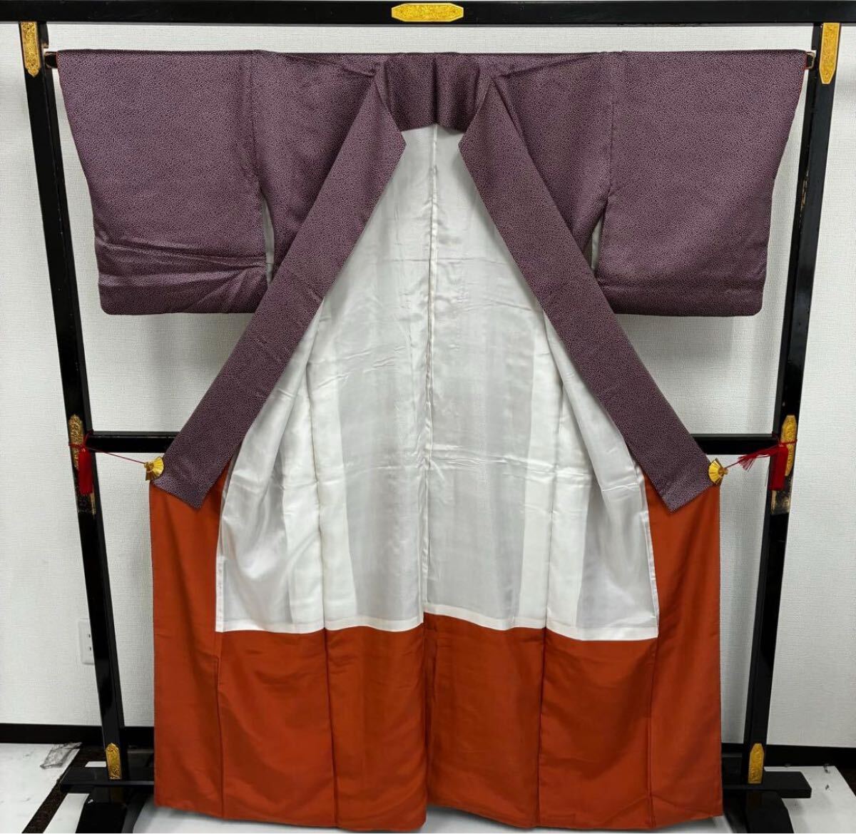 【楓】着物 裄66.5 小紋 正絹 素敵なデザイン 袷 KU-7581