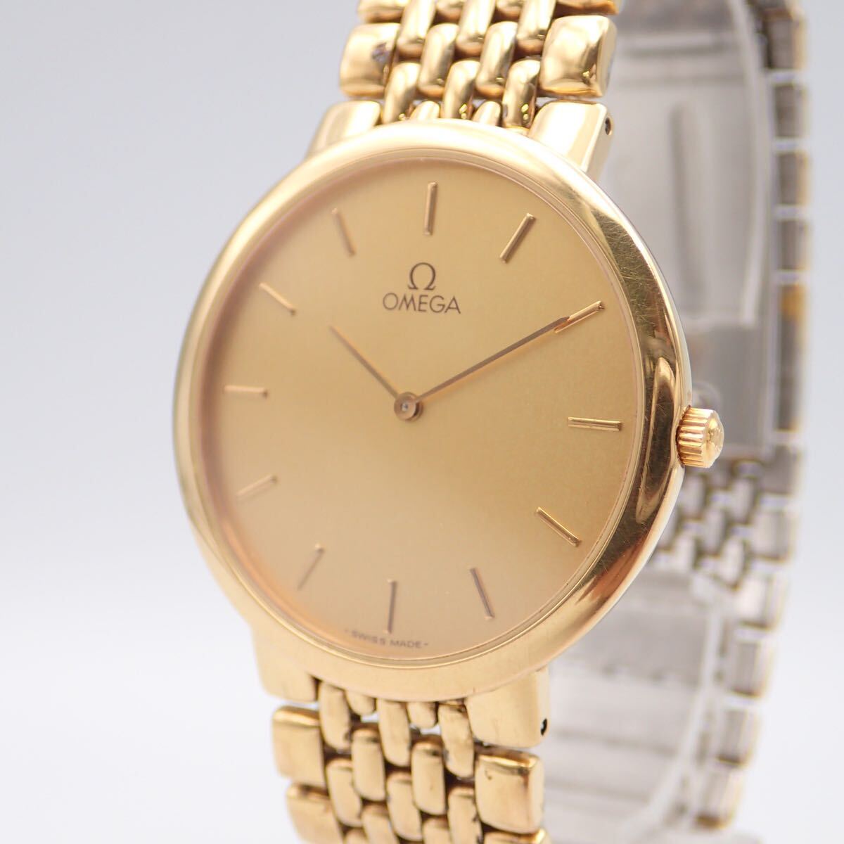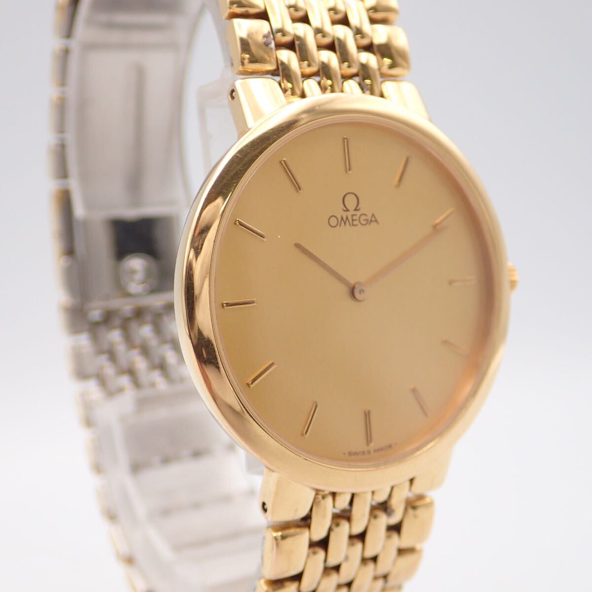 | お10075【美品】オメガ OMEGA デビル De Ville ゴールド文字盤 クオーツ メンズ 腕時計 53859452 動作確認済 | |
