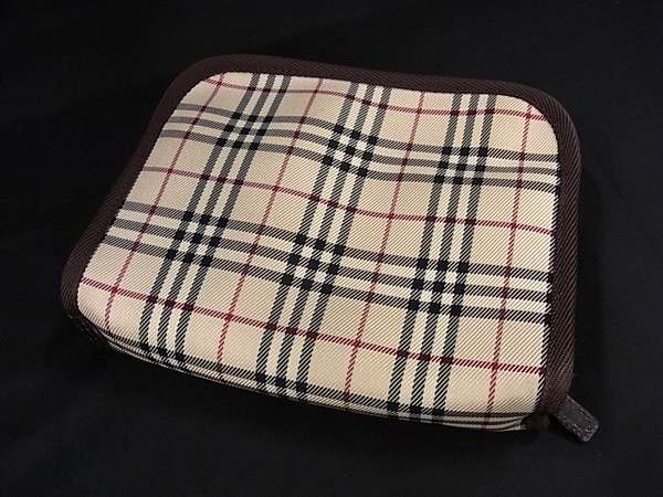 1円 BURBERRY バーバリー ノバチェック ナイロンキャンバス ポーチ マルチケース 小物入れ ベージュ系×ブラウン系 FV4039