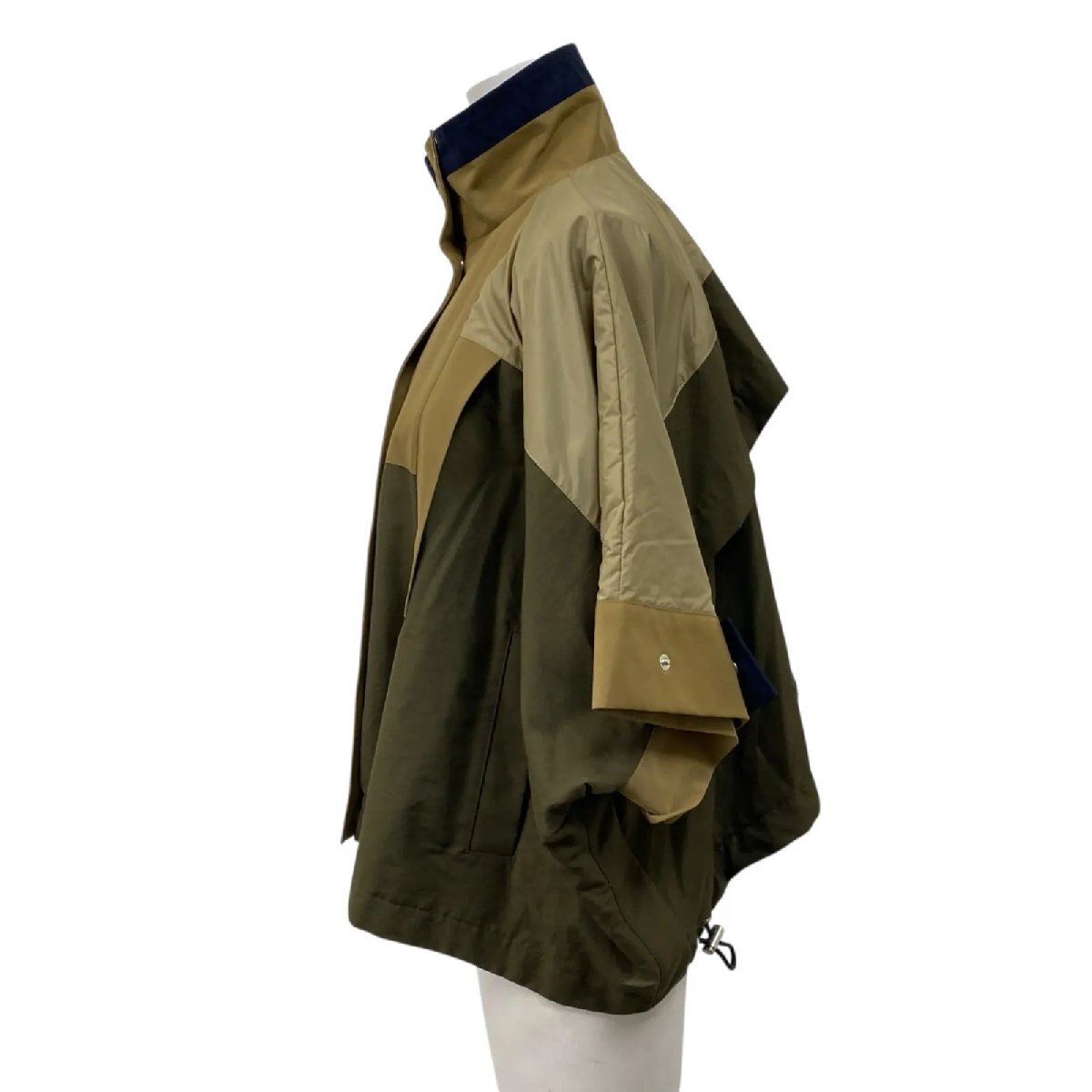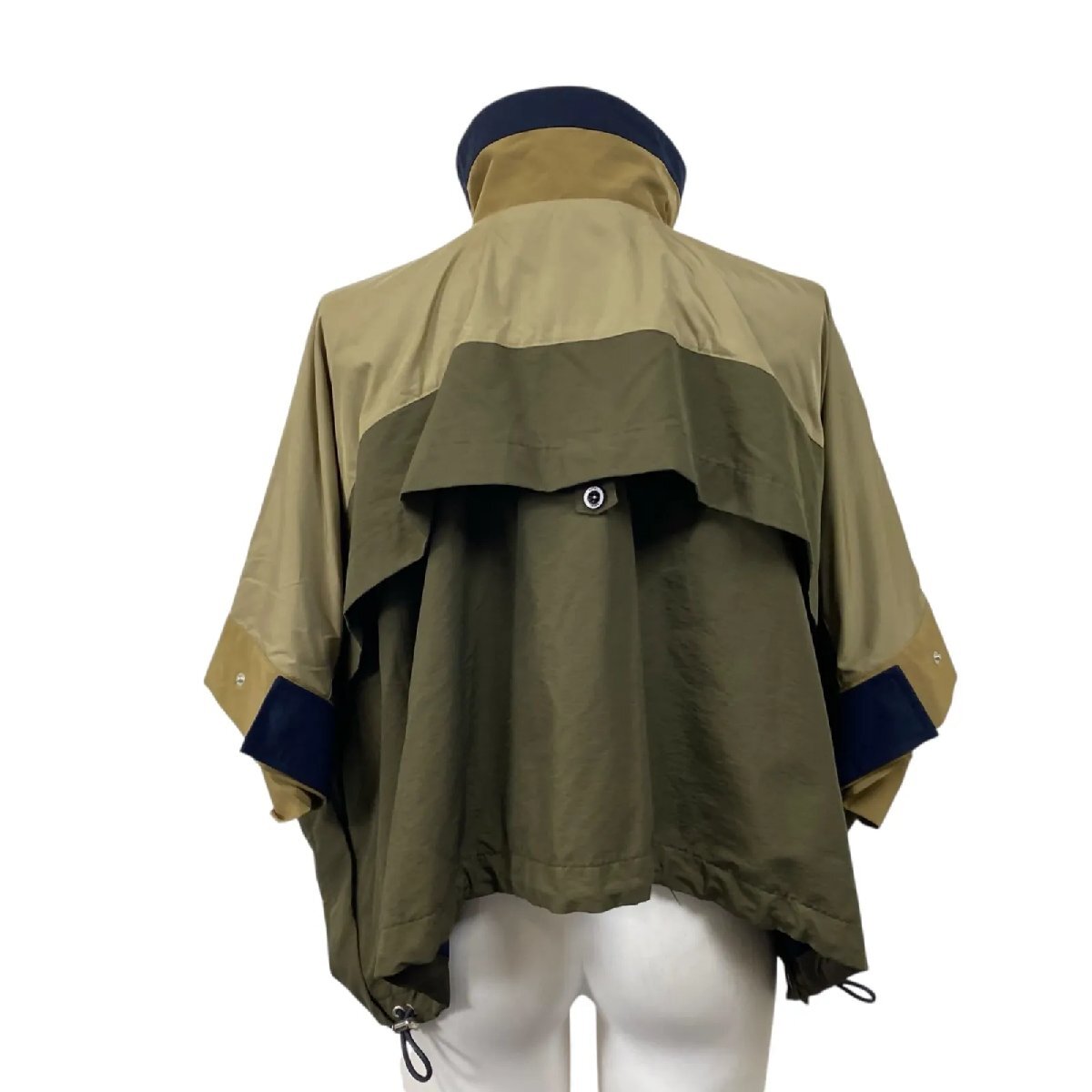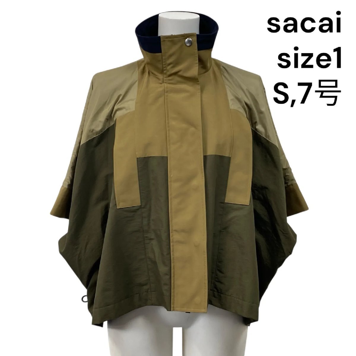 美品 サカイ sacai グログラン ケープジャケット 綿 ナイロン カーキ 1 S 7号 レディース S5U336