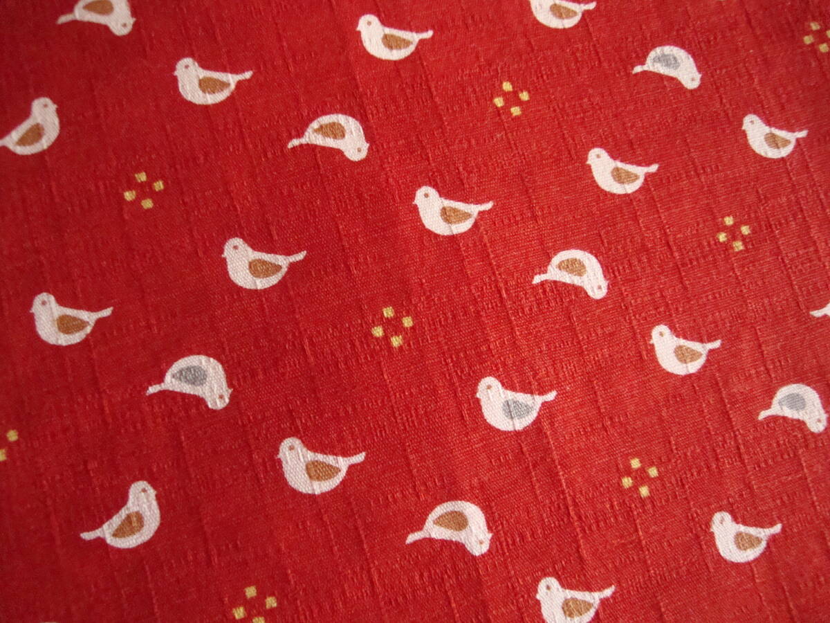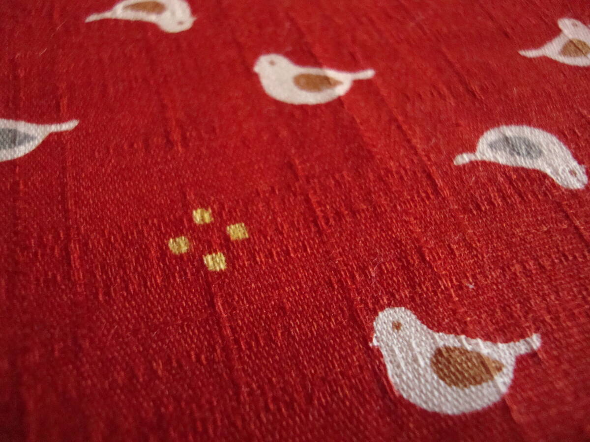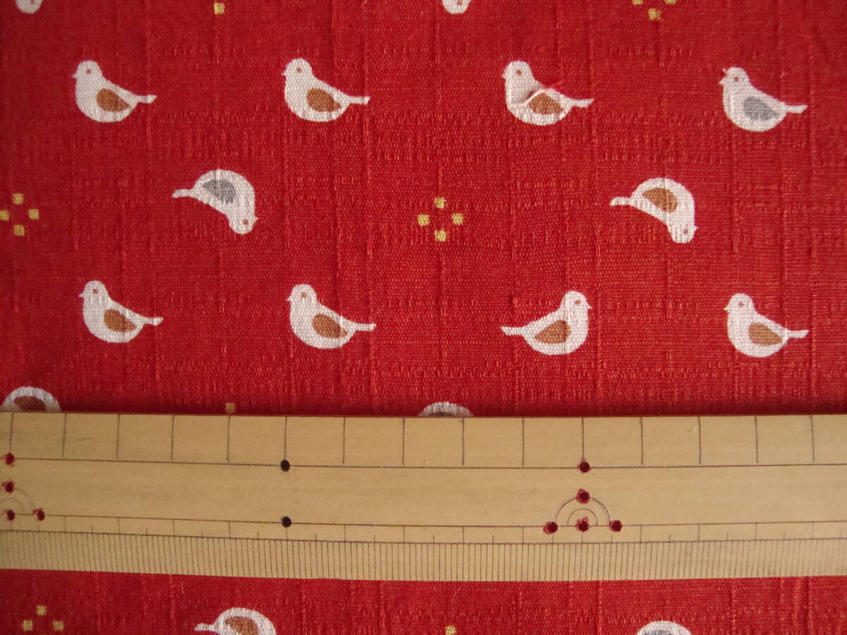 SEVENBERRY セブンベリー 凸凹 織り生地 W109×49.5cm 朱赤 和柄 鳥 ハト 綿 プリント 生地 はぎれ 日本製