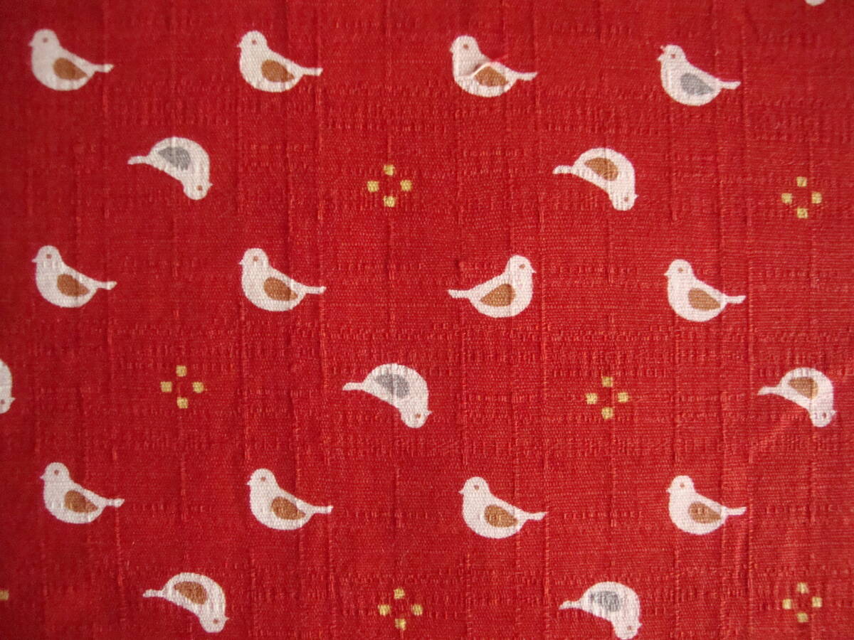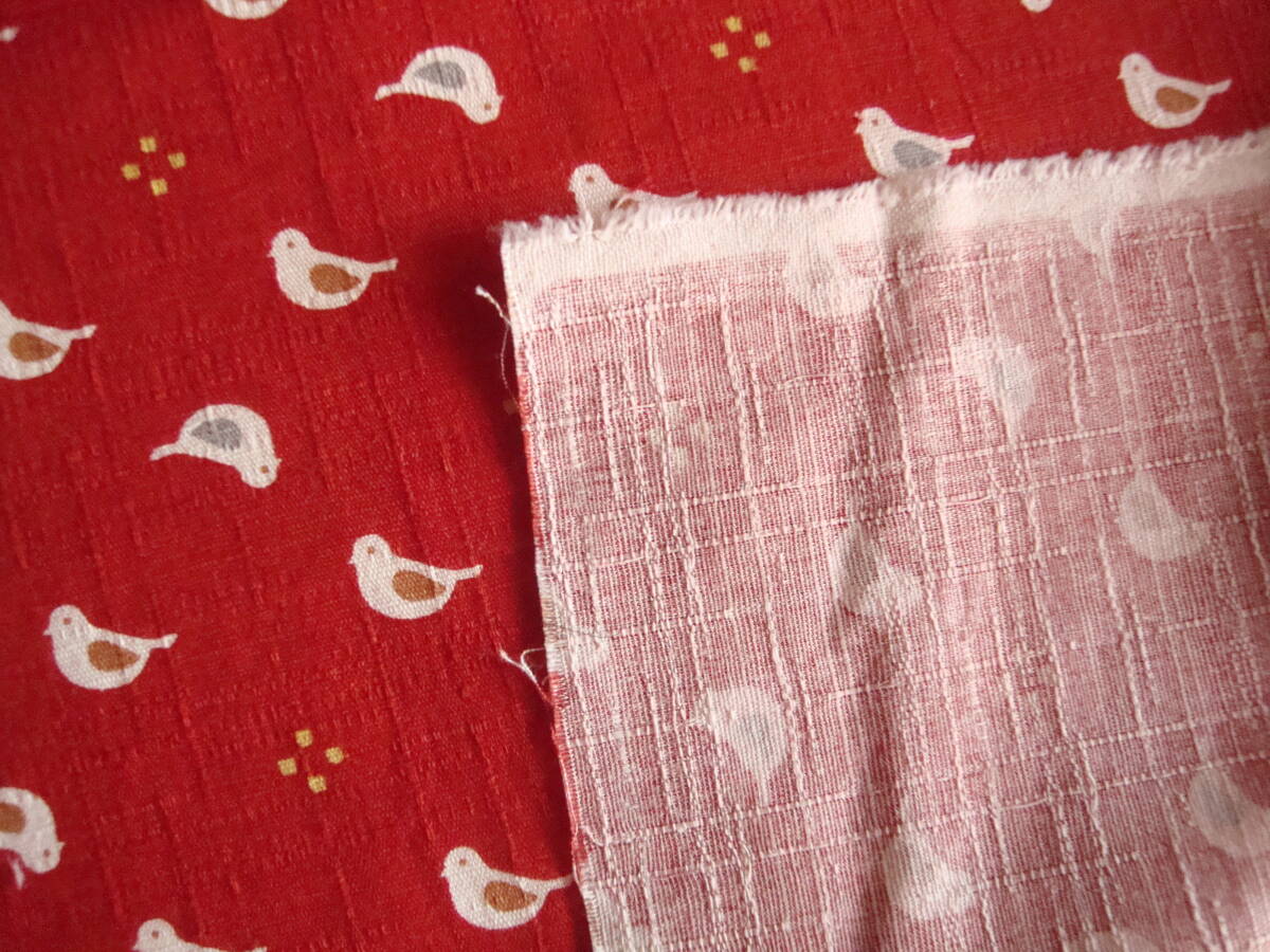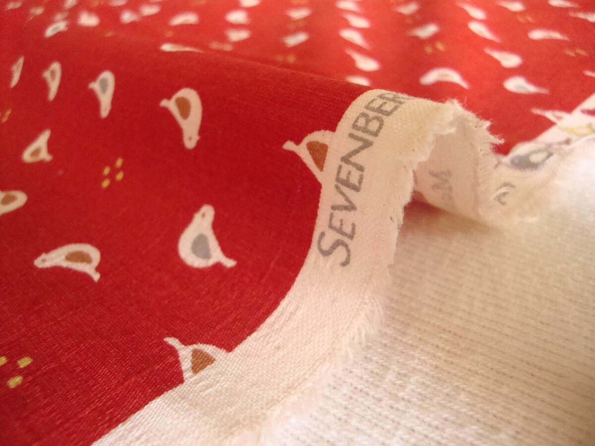 SEVENBERRY セブンベリー 凸凹 織り生地 W109×49.5cm 朱赤 和柄 鳥 ハト 綿 プリント 生地 はぎれ 日本製