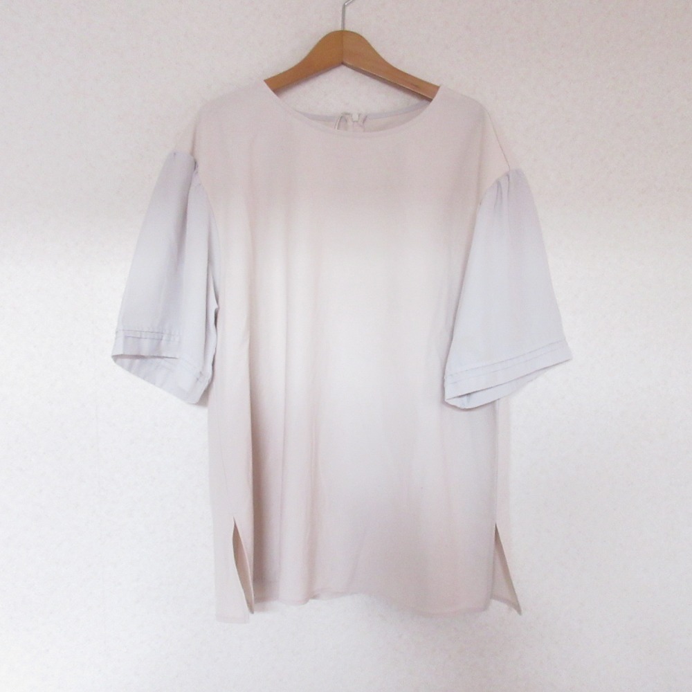 美品 23AW 自由区 ジユウク ツイストプレーンラッフルスリーブ カットソー 半袖 Tシャツ 大きいサイズ 44 ライトベージュ