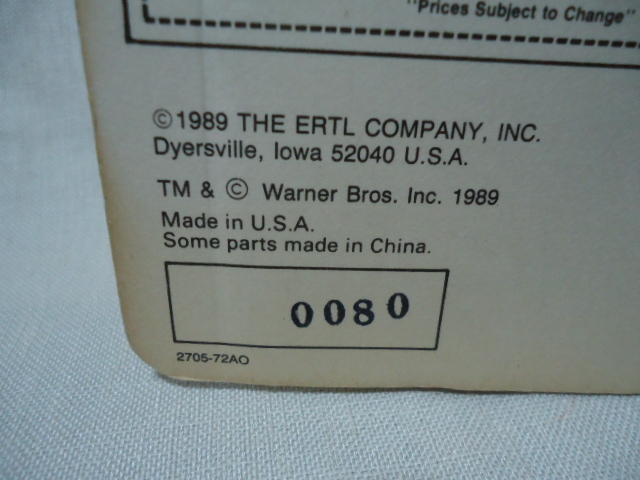 米国にて、個人の方より、購入しました。1989年製。新品未開封デッドストック物ですが、多少パッケージ損傷あります。ERTL社製。スチール・プラスチック製。タイヤ、動きます。サイズは、全長約7.3センチ・車幅約3センチ・高さ約4.5センチです。24時間以内に、お手続き入力後、期限内にかんたん決済、出来る方のみ、ご入札をお願い致します。この商品は、1点物です。 2601 ※※発送方法・送料は、レターパックプラス郵便(追跡可能・手渡し配達・補償無し)ですと、600円又は、簡易書留郵便(追跡可能・手渡し配達・補償有り)ですと、800円又は、ゆうパック送料着払い便(持ち込み割引有り・追跡可能・手渡し配達・補償有り・かんたん決済時は、送料0円ですが、送料のみ到着時支払い)です。※※ ☆★★★★★☆送料は、変わりますが、何点でも、同梱包可能です。数点落札されましたら、まとめて取引を、選択お願いします。☆★★★★★☆