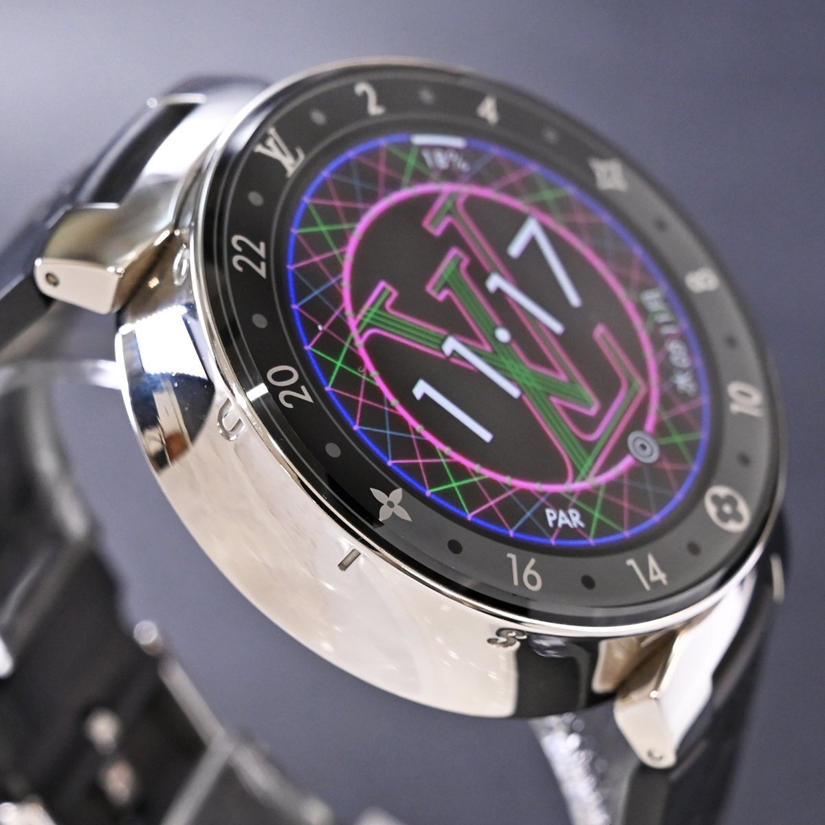 ルイ・ヴィトンのV2 タンブール ホライゾンです。 新しいタンブール ホライゾンは、ルイ・ヴィトンの旅の真髄(こころ)、ラグジュアリー、そして創造的価値観をすべて体験できるユニークなコネクテッド・ウォッチ。 これまでに発表されたモデルの成功をもとに、新しいデザインエレメント、素材、カラーが加わってさらに魅力的にアップデートしました。 バラエティ豊かなオプションにより、ウォッチフェイスのカスタマイズの可能性がさらに拡大。 組み合わせ次第で世界に一つしかない、自分だけのダイアルに仕上げることができます。 市場でも圧倒的な人気を誇るモデルなのでお探しの方も非常に多いかと思います。 ※基本動作確認済。 ※ペアリンク確認済。 |