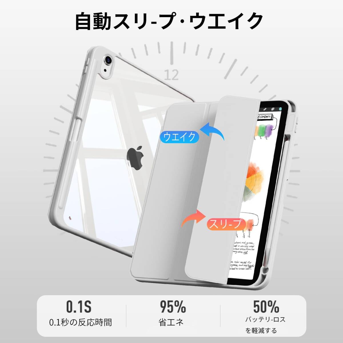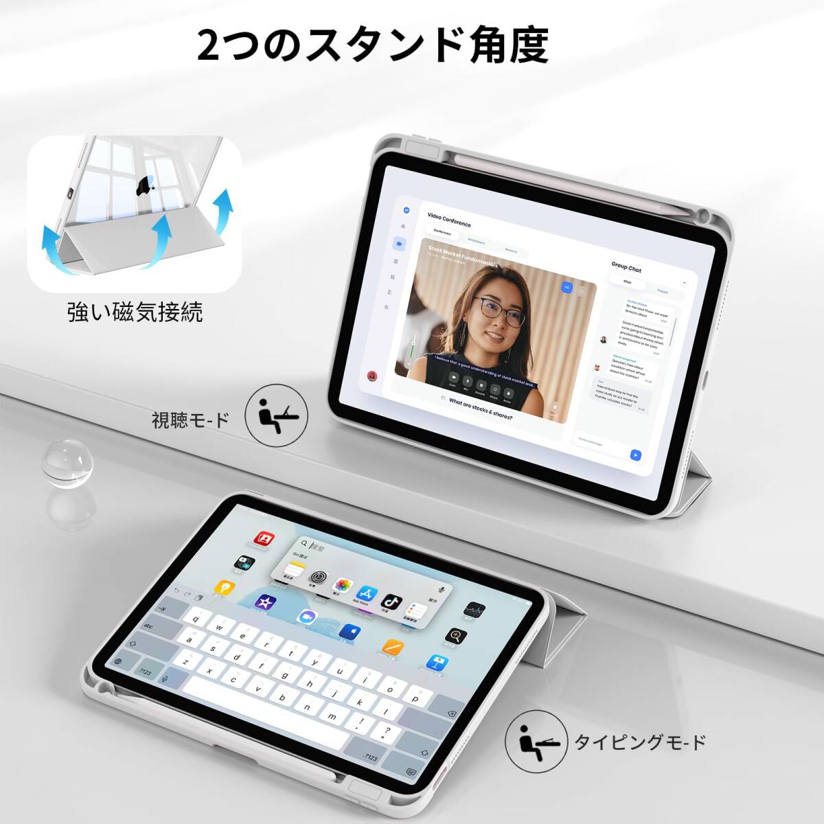 Touch IDと Pencil2収納 収納 三つ折りスタンド オートスリープ ペンシルホルダー付き カバー 機能対応薄型 アクリ