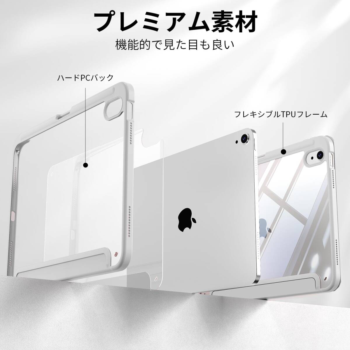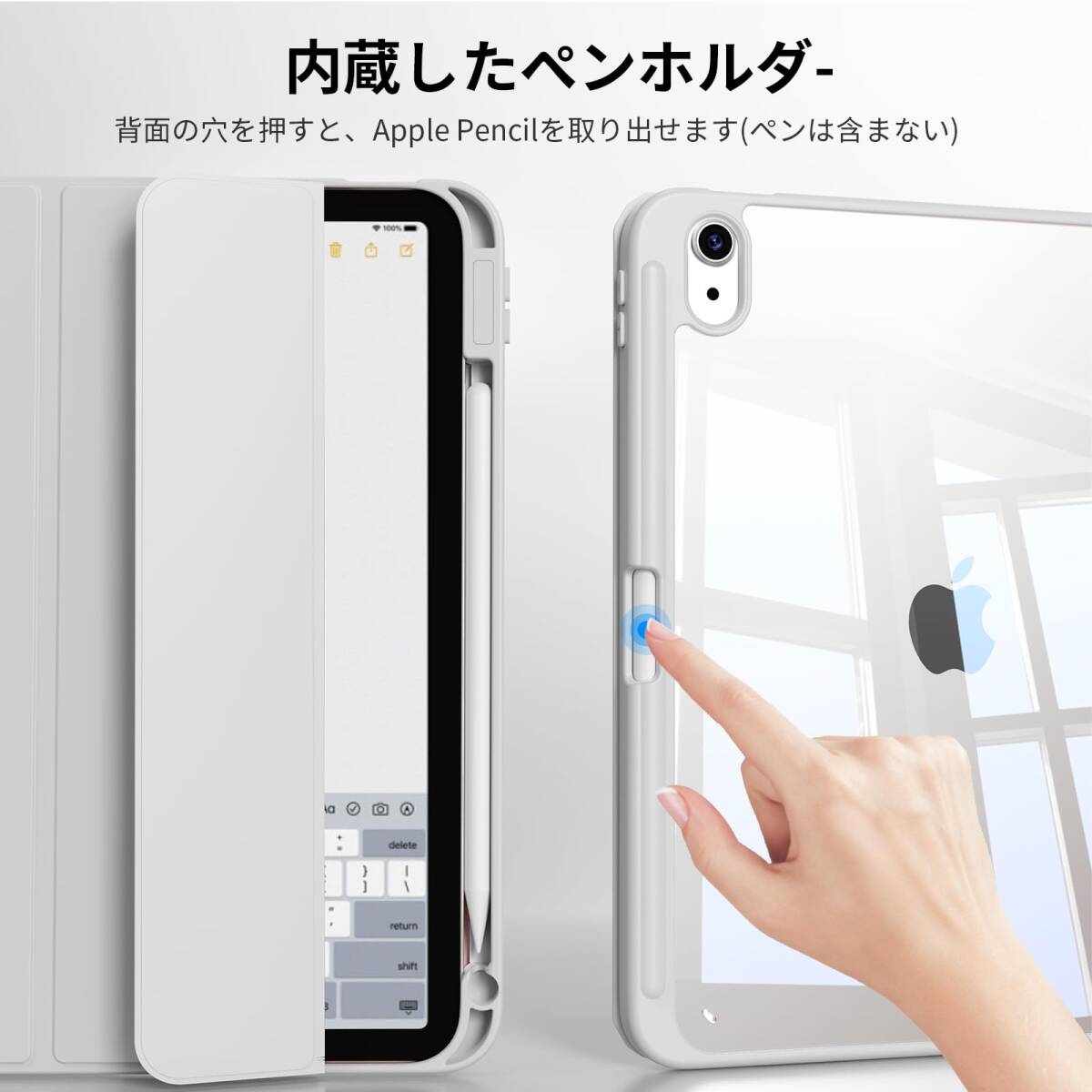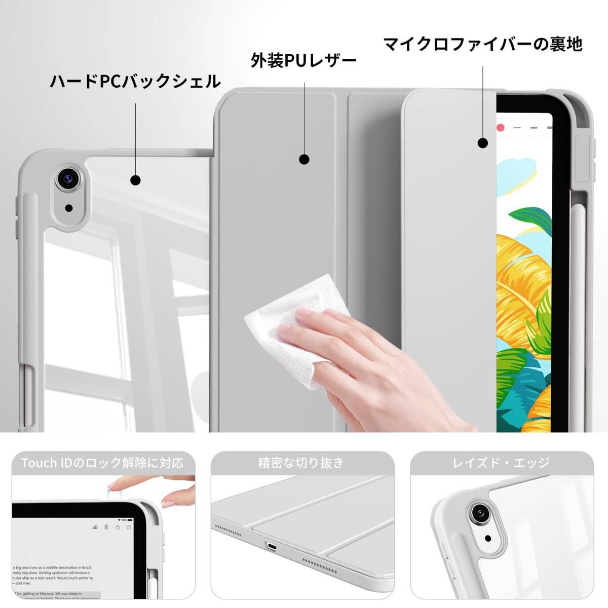 iPad 第11世代 ケース iPad(A16)11インチ 2025/第10世代10.9インチ 2022通用, 透明 アクリル カバー ペンシルホルダー付き 三つ折りスタンド 収納 Pencil2収納 Touch IDと オートスリープ 機能対応薄型 軽量 耐衝撃 グレー