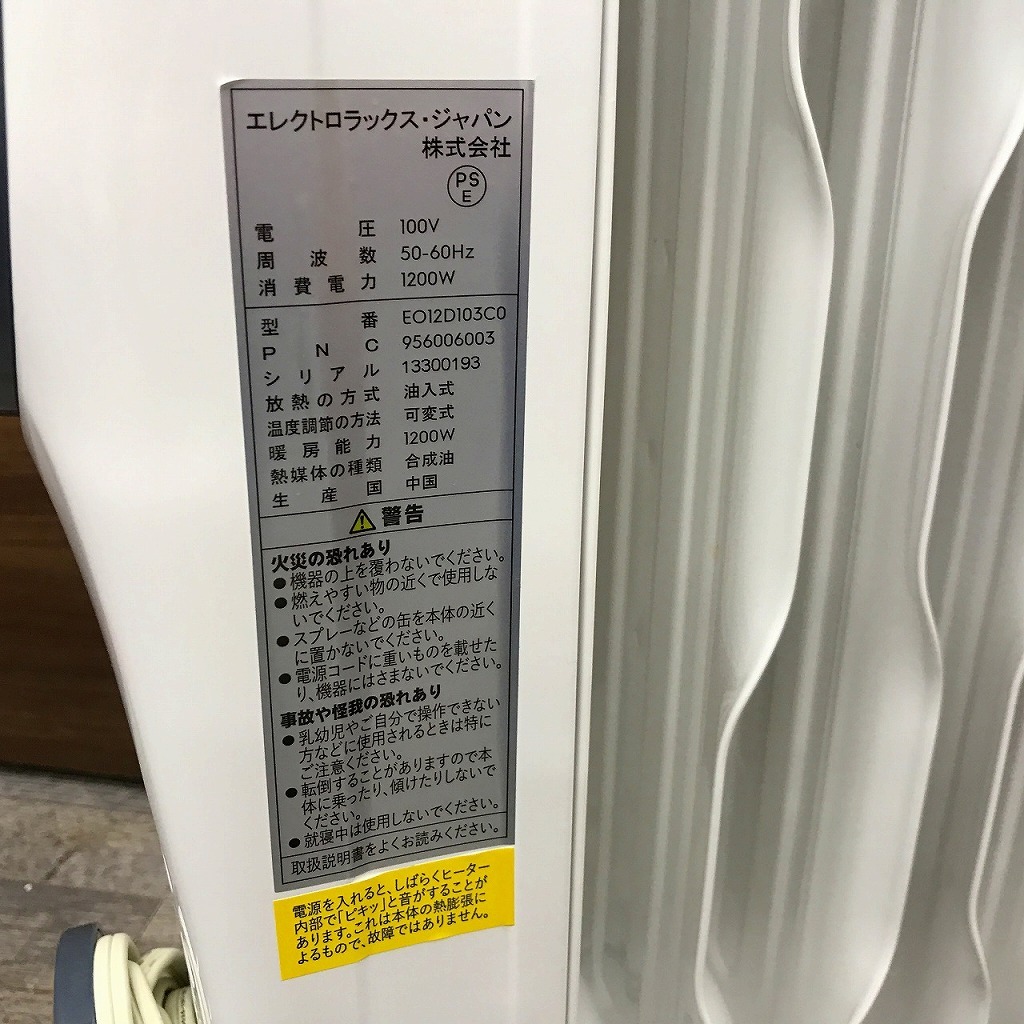 期間限定セール エレクトロラックス Electrolux オイルヒーター EO12D103C0