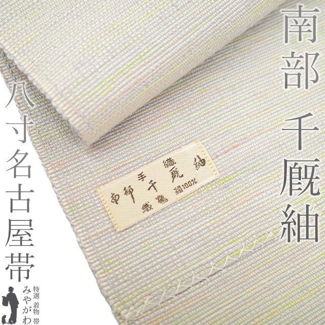 名古屋帯 リサイクル 正絹 八寸 南部 千厩紬 織鶴 絹工房 手織り 白ベージュ ライトグレー カジュアル 中古 仕立て上がり みやがわ sb54724