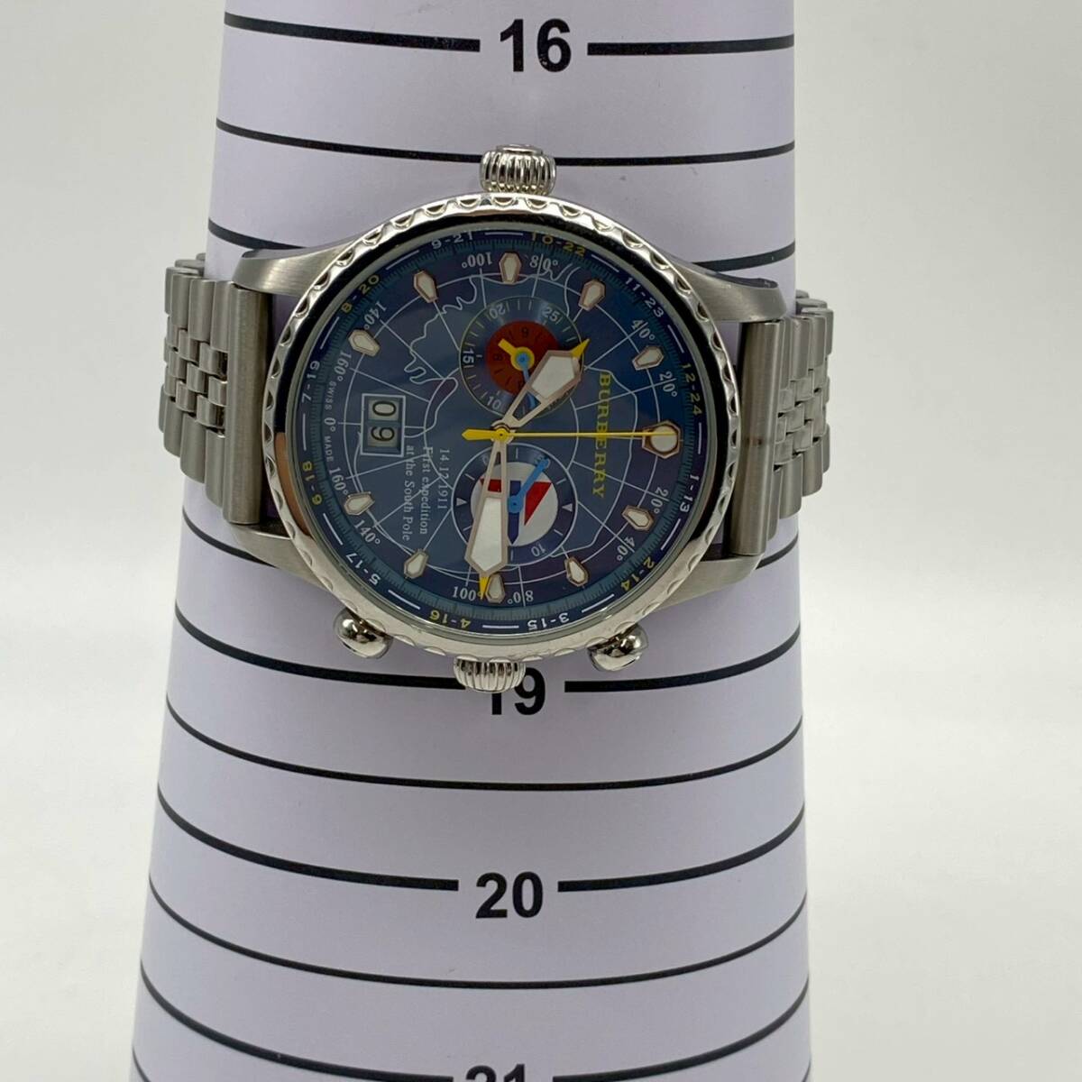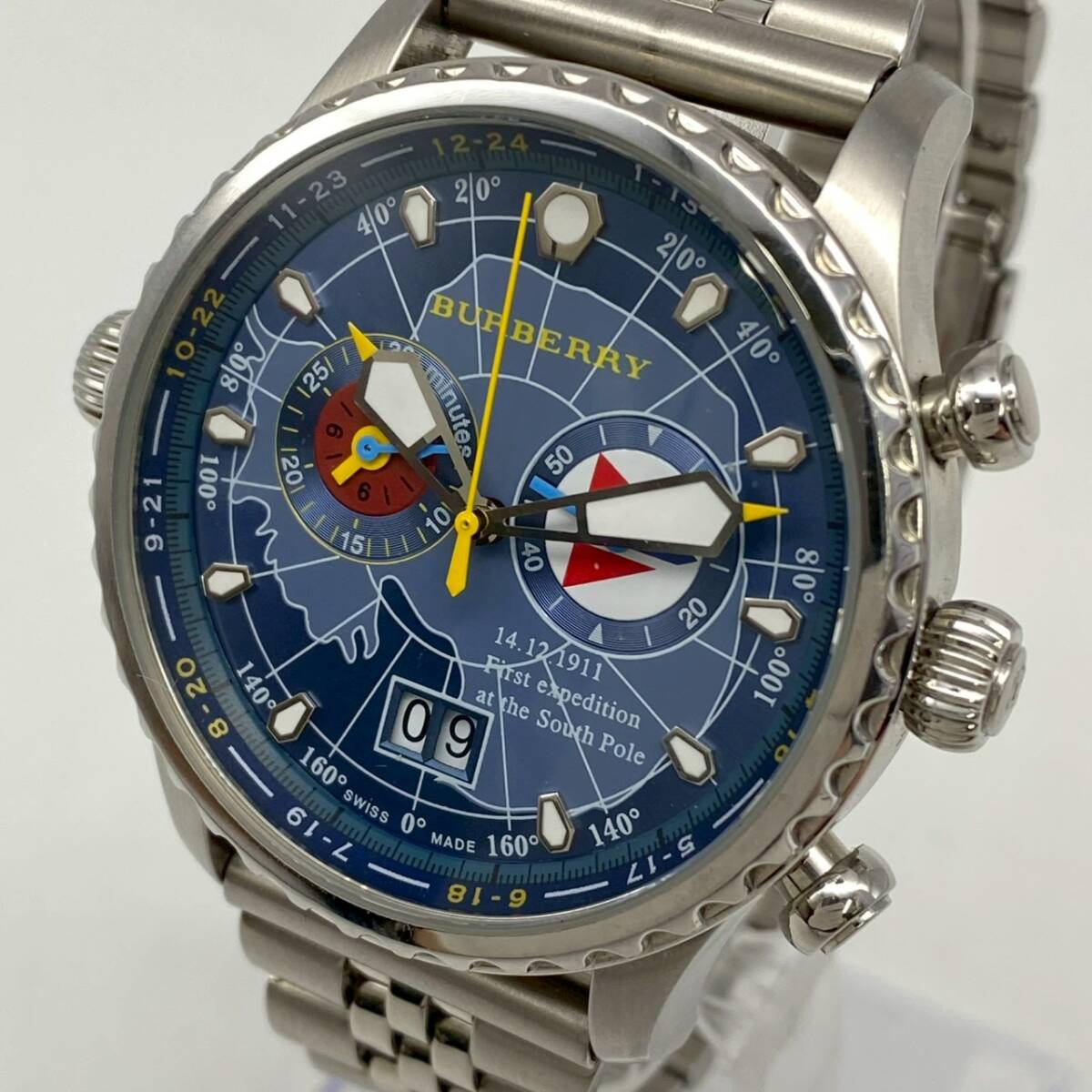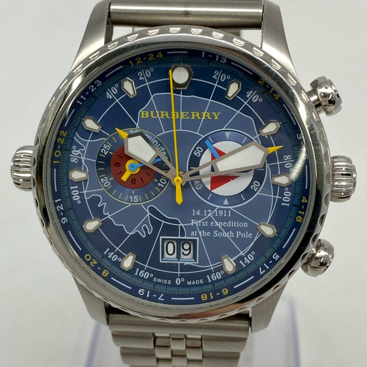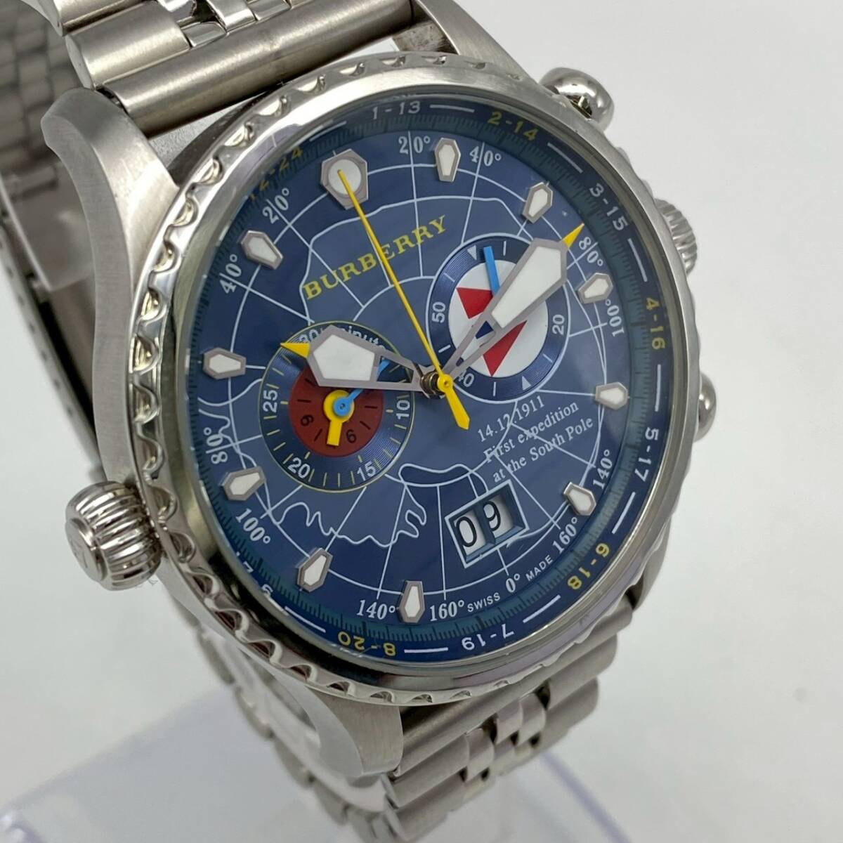 ◆ BURBERRY バーバリー 腕時計 BU7504 ビッグデイト ブルー文字盤 シルバー メンズ 稼働品 ◆