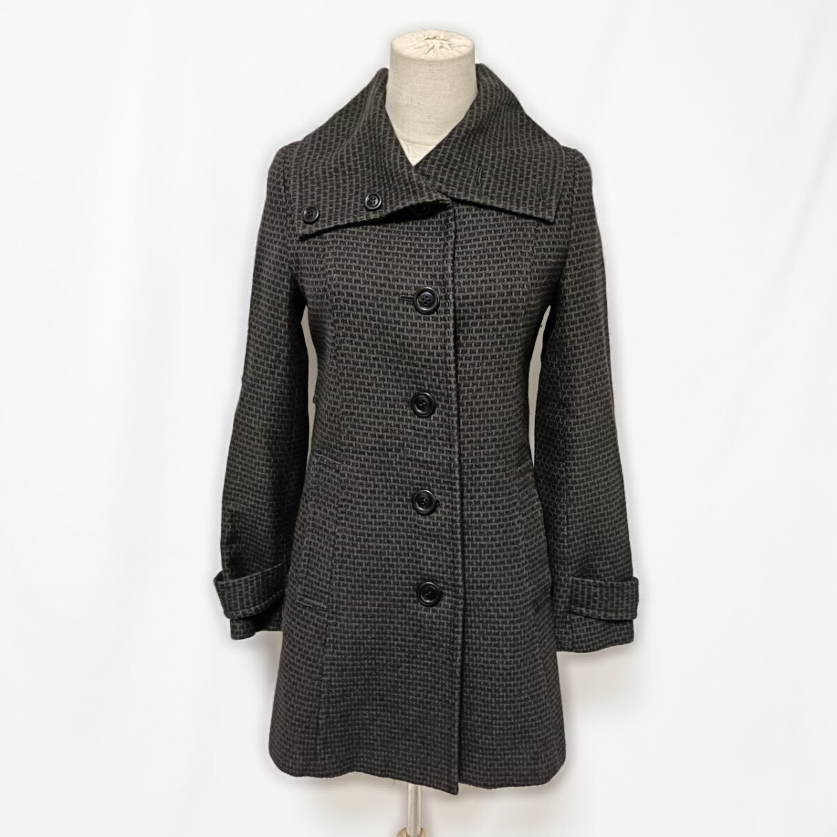 ★美品★UNTITLED アンタイトル アンゴラ混ウールコート 1S-M 黒スタンドカラー
