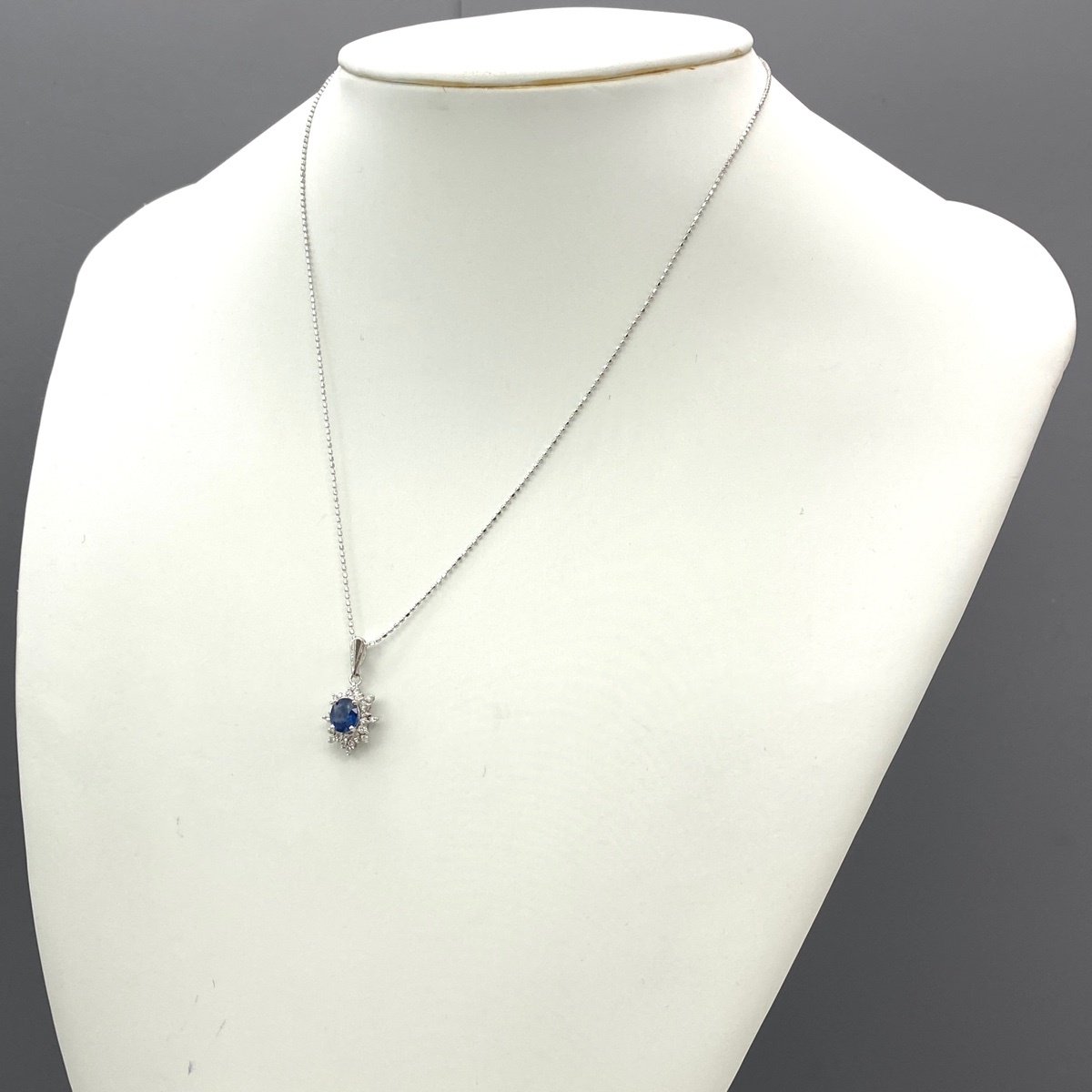 | サファイア デザインネックレス WG ホワイトゴールド ペンダント メレダイヤ ダイヤモンド ネックレス K18 WG サファイア レディース 【中古】 |
