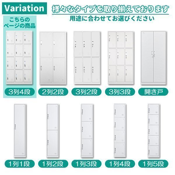 ロッカー スチールロッカー 12人用 ホワイト 白 鍵付き スペアキー付き 3列4段 スチール製 収納 オフィス 事務所 会社 店舗 学校 業務