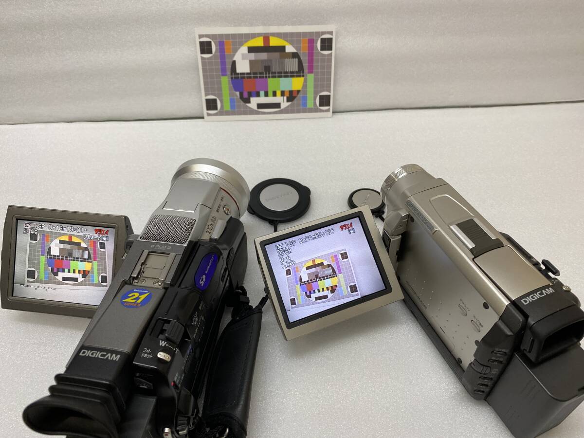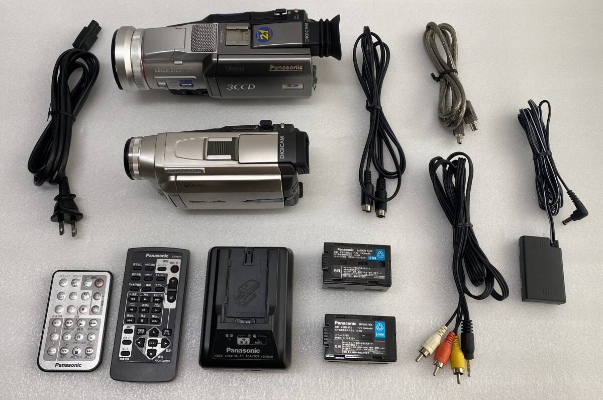 Panasonic パナソニック DVカメラ NV-MX2500 と NV-DS200 2台まとめてです。miniDVテープにデジタルビデオを撮影、再生するビデオカメラです。過去に撮影したminiDVテープのダビングなどにいかがでしょうか。DV ケーブル(iLink)接続すればカメラ2台でダビング可能です。カメラ2台の録画・再生・REW・FF・テープエジェクト・映像出力確認済です。レンズ内目立つほこり・曇りなどはありません。内部メモリー用ボタン電池消耗しておりますので時計がリセットさせることはあります。ご承知おきください。外部バッテリー付けたままの状態だと時計リセットなる問題ありません。