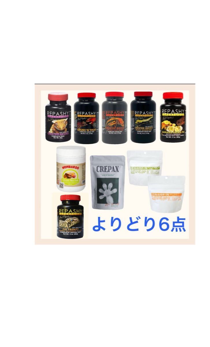 | *** 爬虫類 トカゲ、ヤモリ用 人工飼料 よりどり6点セットお試しサイズ *** | |