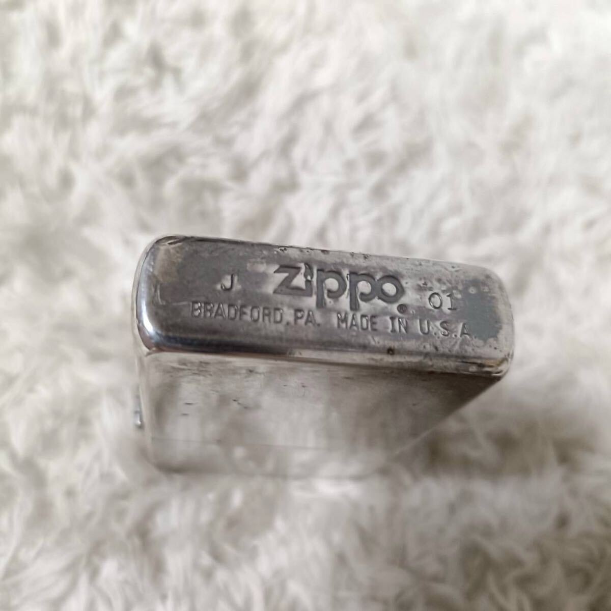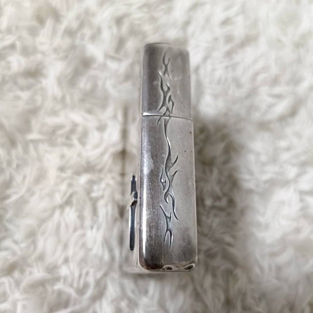 ZIPPO ジッポー 2001年製 クロス 十字架 ファイヤーパターン 彫刻 デザイン シルバー ビンテージ