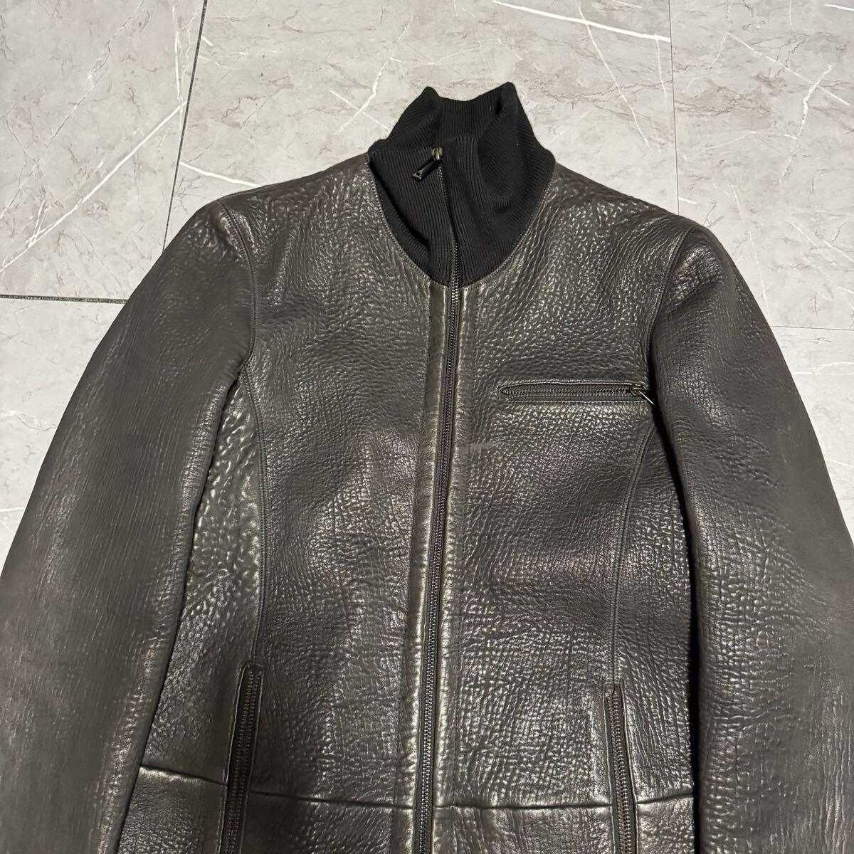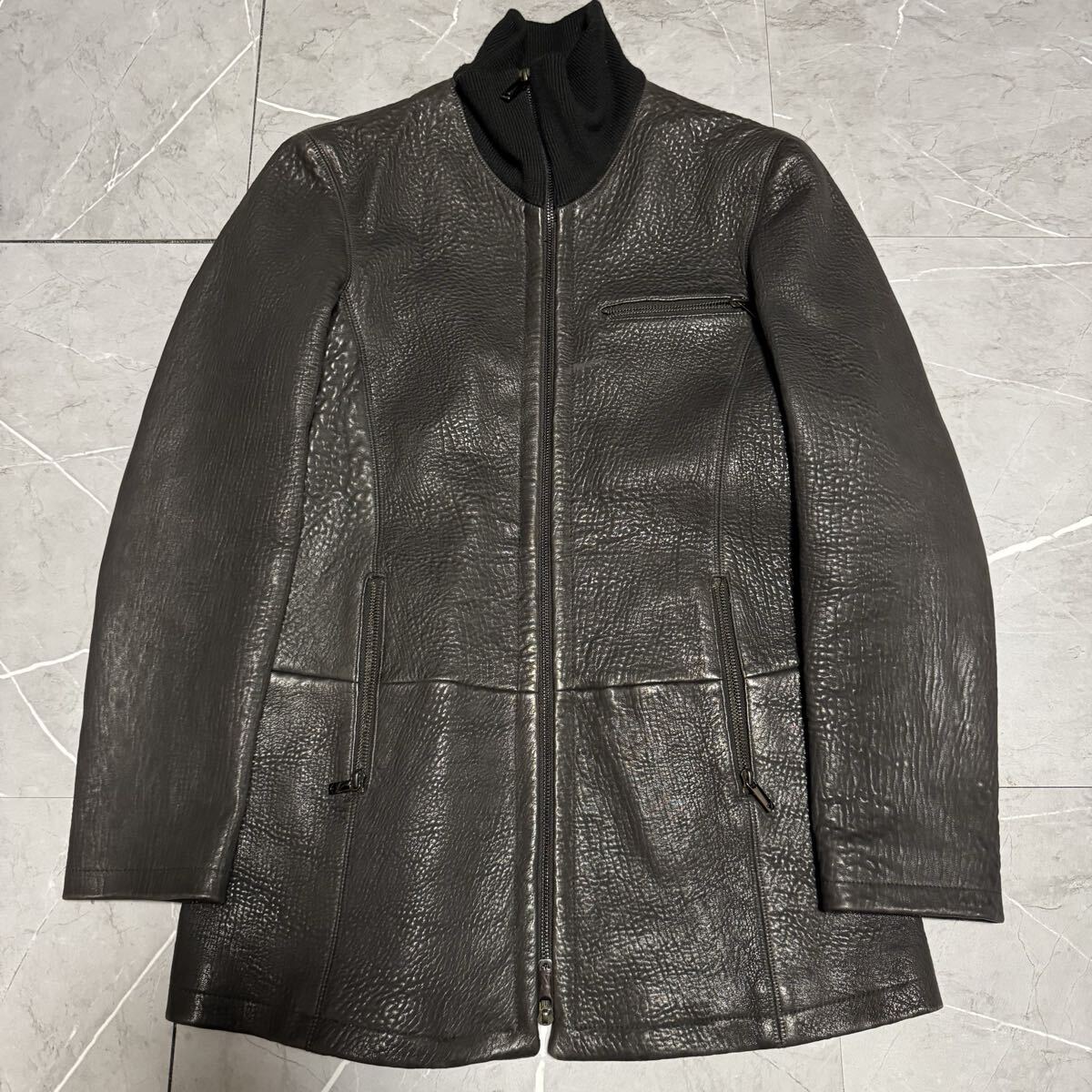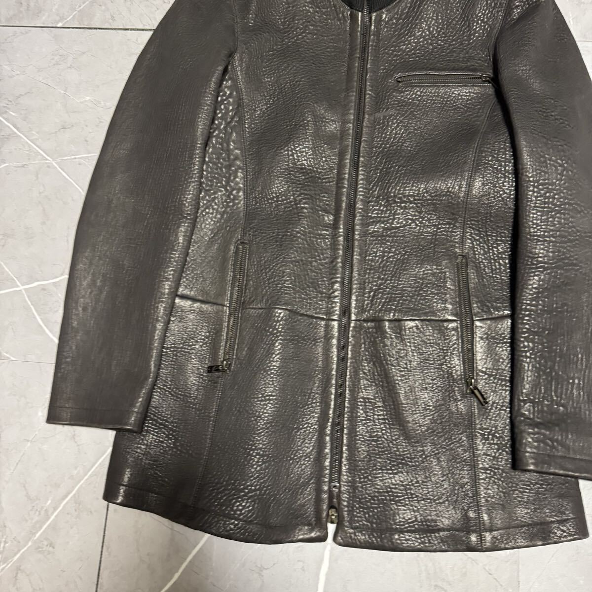 【美品!!極上レザーコート!!】【メンズL相当!!】EMPORIO ARMANI エンポリオアルマーニ レザージャケット コート ブルゾン ブラック