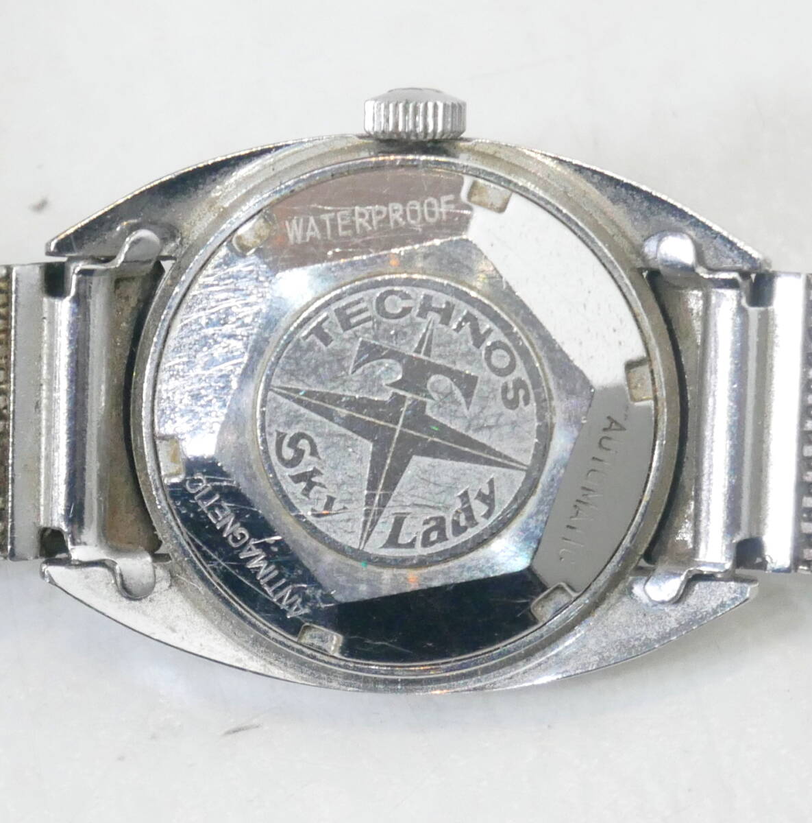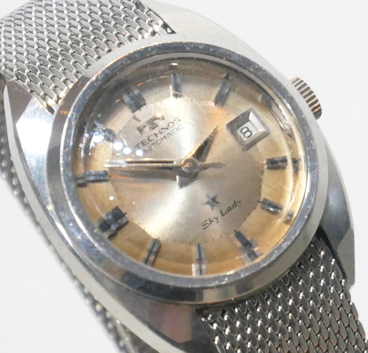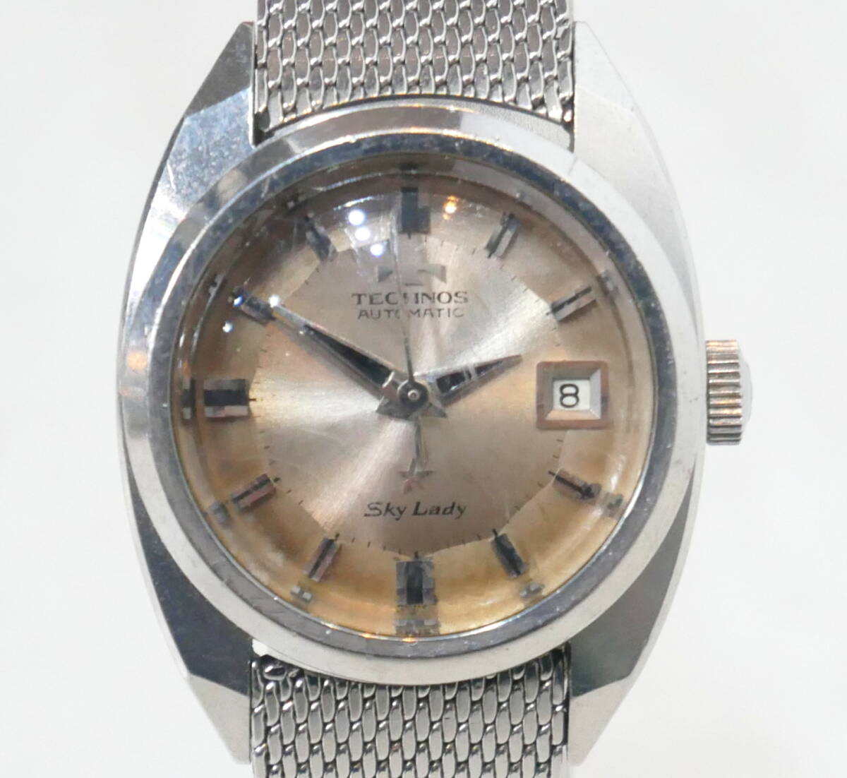 | ▼送料210円(R711-H56) TECHNOS テクノス Sky Lady スカイレディ デイト シルバー 自動巻き レディース腕時計 | |