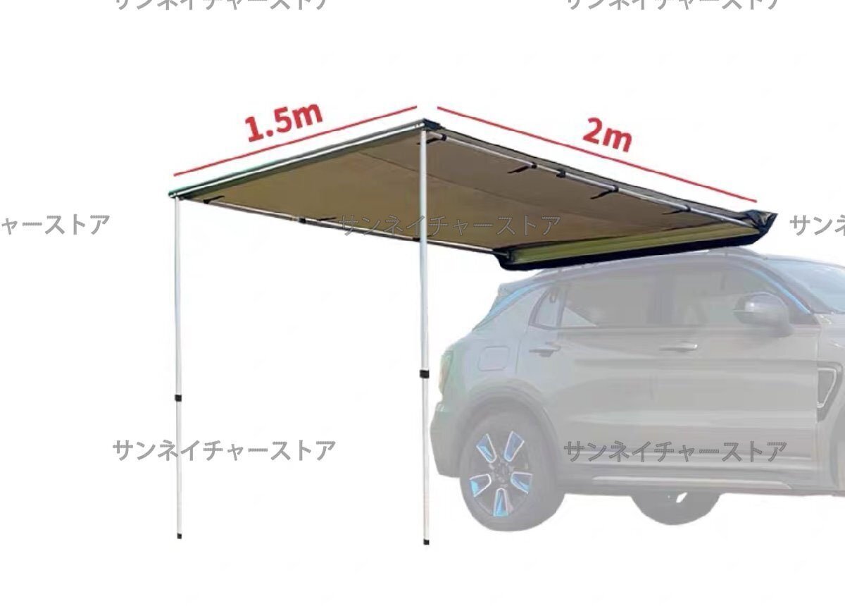 人気新品◆便利グッズ アルミ合金製 サイドオーニング カーサイドオーニング オーニングテント カーサイドタープ 汎用 屋根 収納式1.5m*2m