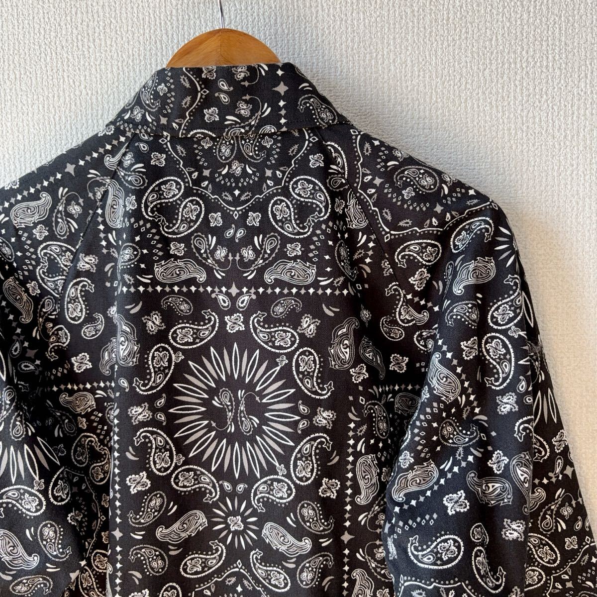 ブラックベースのペイズリー柄、さらっと羽織れるライトな生地感の一着です。