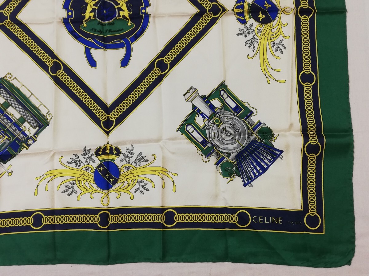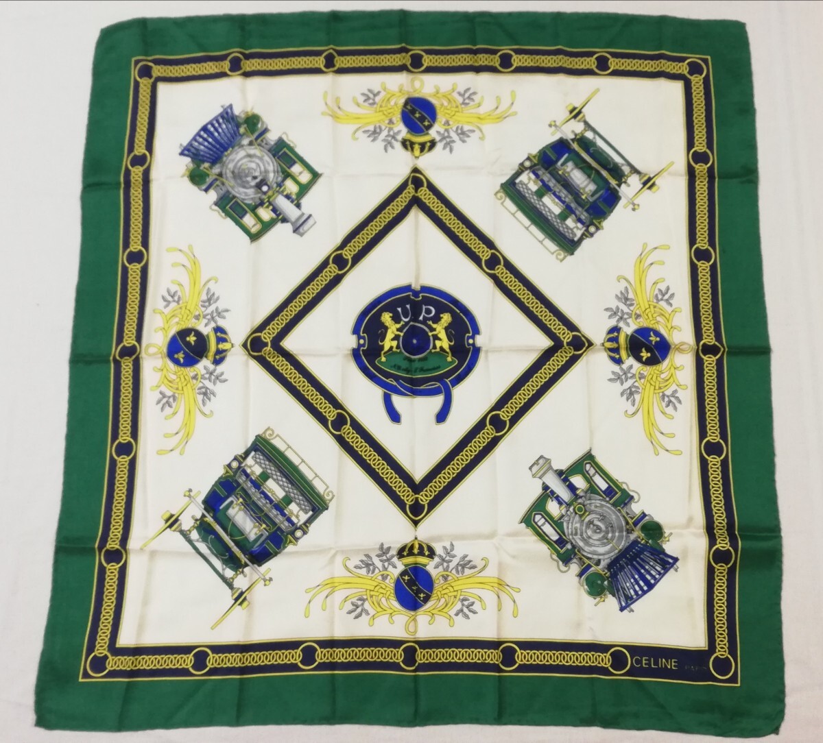 CELINE セリーヌ スカーフ シルク グリーン系 馬車