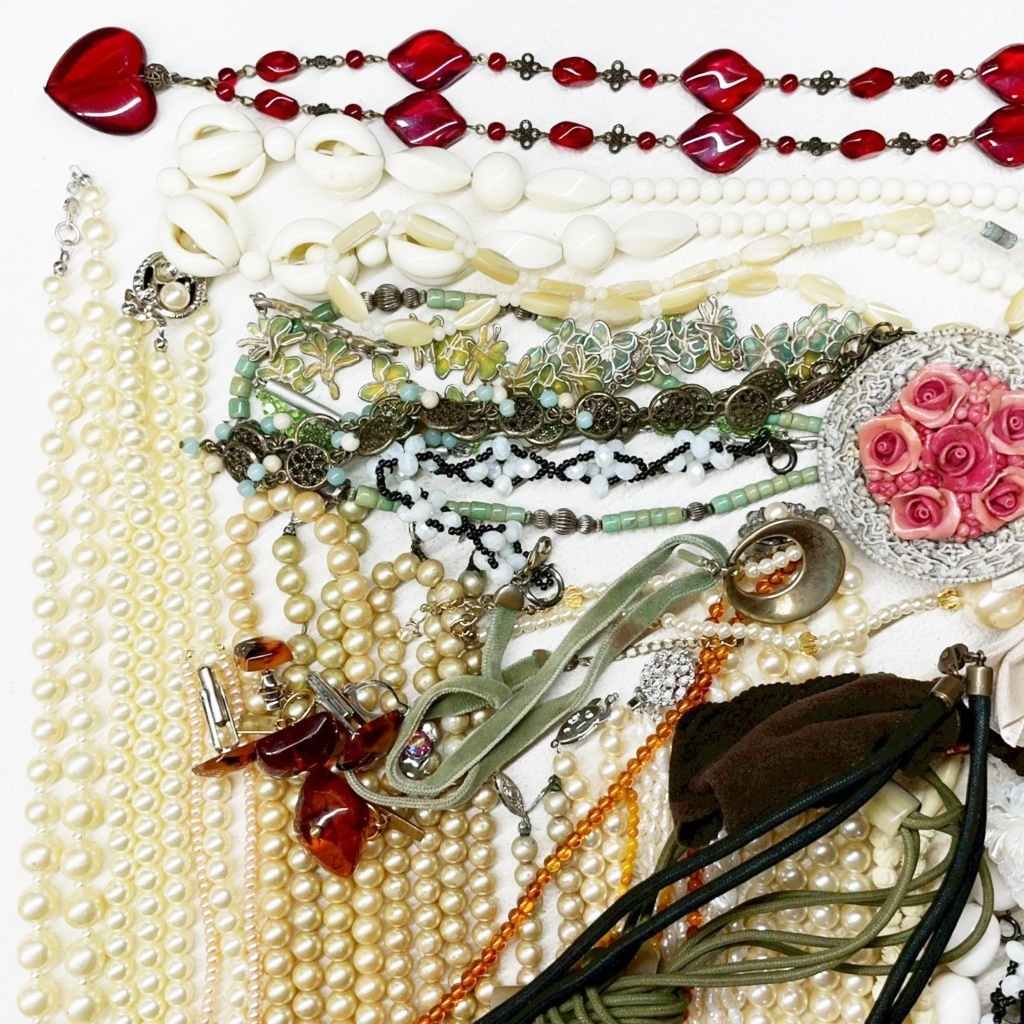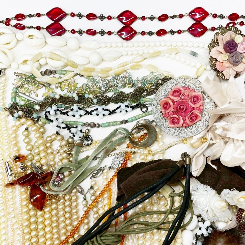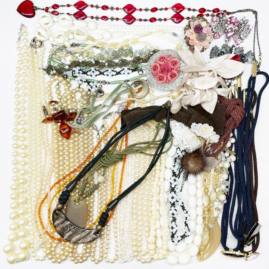 ▼商品特徴 商品に興味をもっていただき、ありがとうございます。 写真にありますアクセサリー類 まとめ商品です。 ◆商品 : アクセサリー類 卸 ・画像にあります様に多種多様なアクセサリーになります。 ※各商品材質など一切査定しておりませんのでご了承ください。 ◆総重量 : 1,125g ◆状 態 : USED ・金具の壊れているもの、傷、汚れがあるものもあります。 ※返金には対応出来ませんのでご了承ください。 ※同梱可能な場合もございますのでその際はおまとめ取引をご選択ください。 ※配送方法がヤフネコ又ゆうパック2種類ございますので同梱出来かねる場合がございます。 こちらで他にも出品中。Crew・actショップ↓↓ ![]() | ||