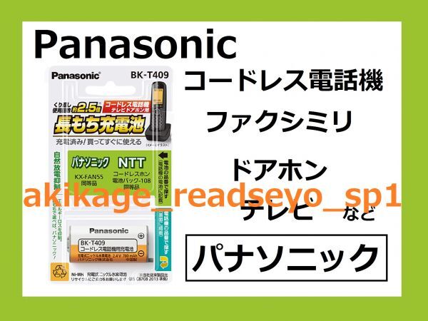BK-T409です。(充電式、充電池 ) *対応:電話機品番:BK-T409 *対応:電池品番:パナソニック KX-FAN55 電池品番:NTT コードレスホン電池パック 108