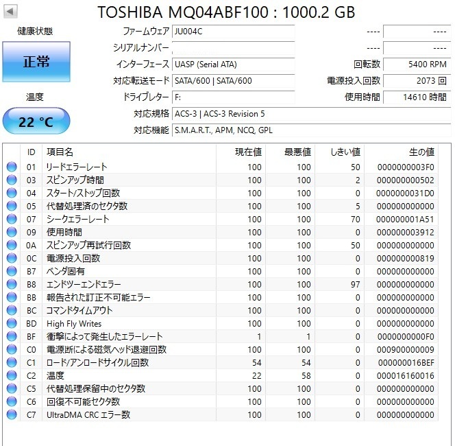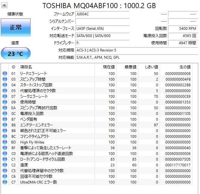 H095【送料無料】3台セット TOSHIBA 2.5インチ 1TB HDD 中古動作品