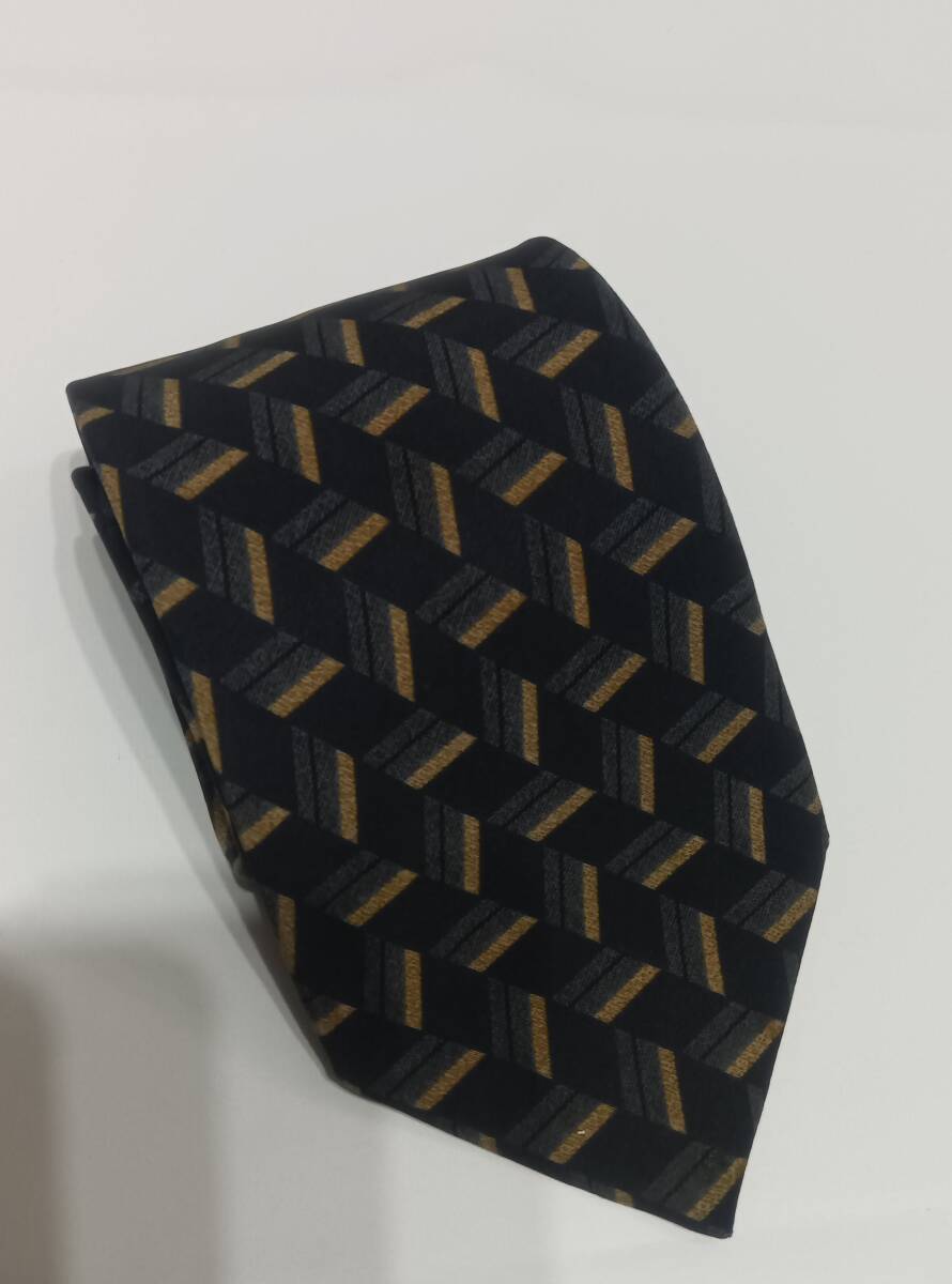 [S261124] ARMANI (アルマーニ)ブラック系 格子柄ネクタイ(USED)