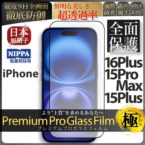 iPhone 16 Plus iPhone 15 ProMax iPhone 15 Plus 全面保護 強化ガラスフィルム 旭硝子 自動吸着 99%透過 保護フィルム 液晶保護フィルム