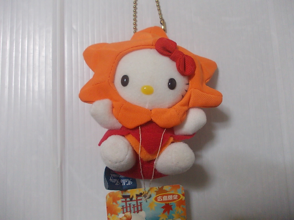 サンリオ 2001年製 ハローキティ ご当地 広島限定 もみじ 紅葉 ぬいぐるみ ボールチェーン マスコットです。