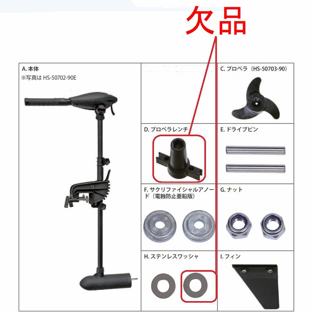 取説・プロペラレンチ・ステンレスワッシャ×1個が欠品しています。