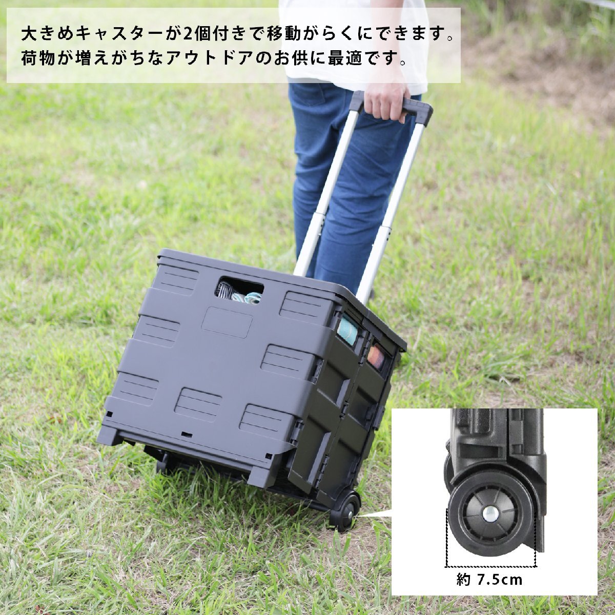キャンプや公園、レジャー・ショッピングに!大きめキャスターが2個付きなので荷物を楽に運べます。