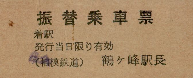 ■ 相模鉄道 鶴ヶ峰駅 【 振替乗車票 】 相鉄