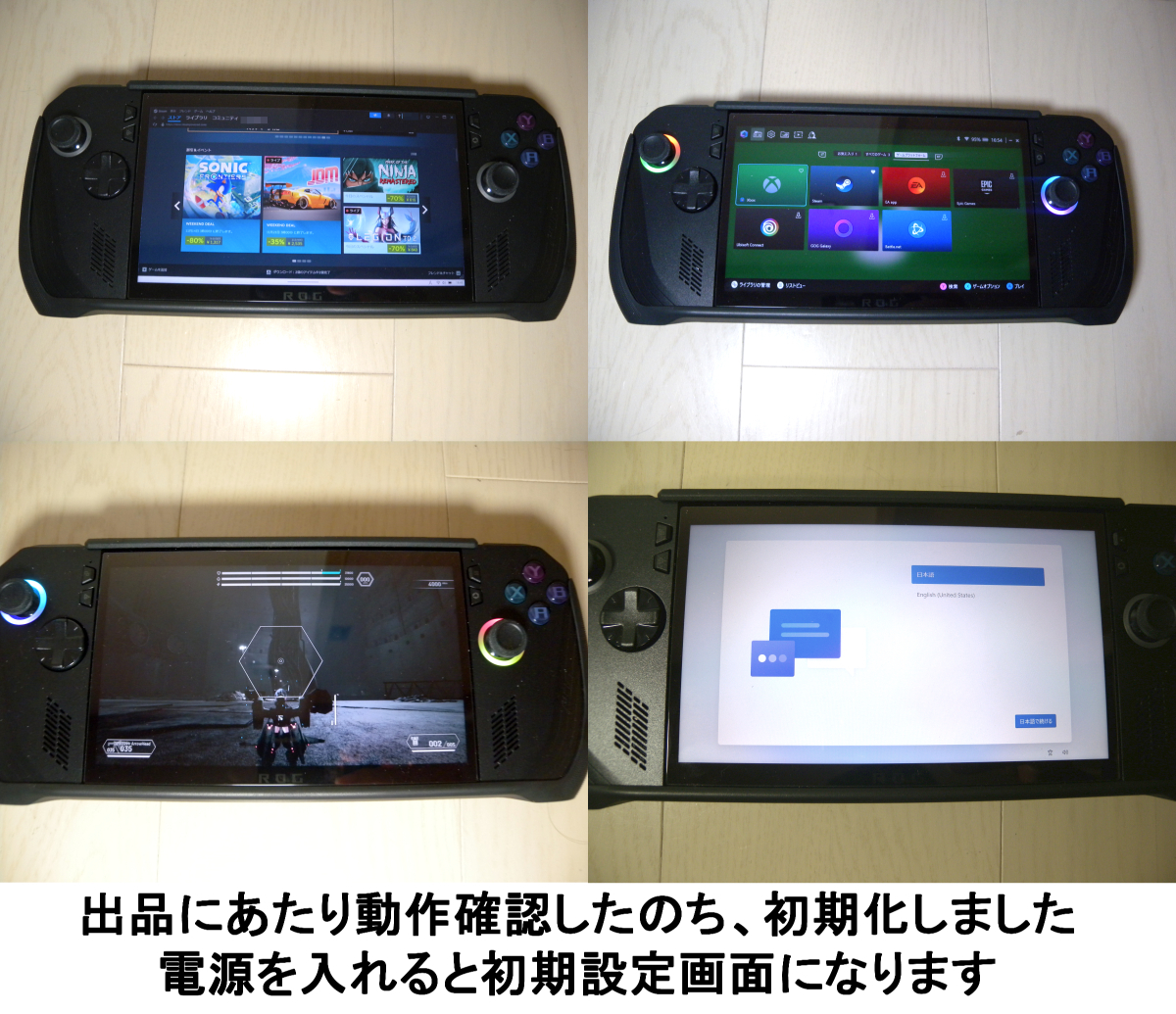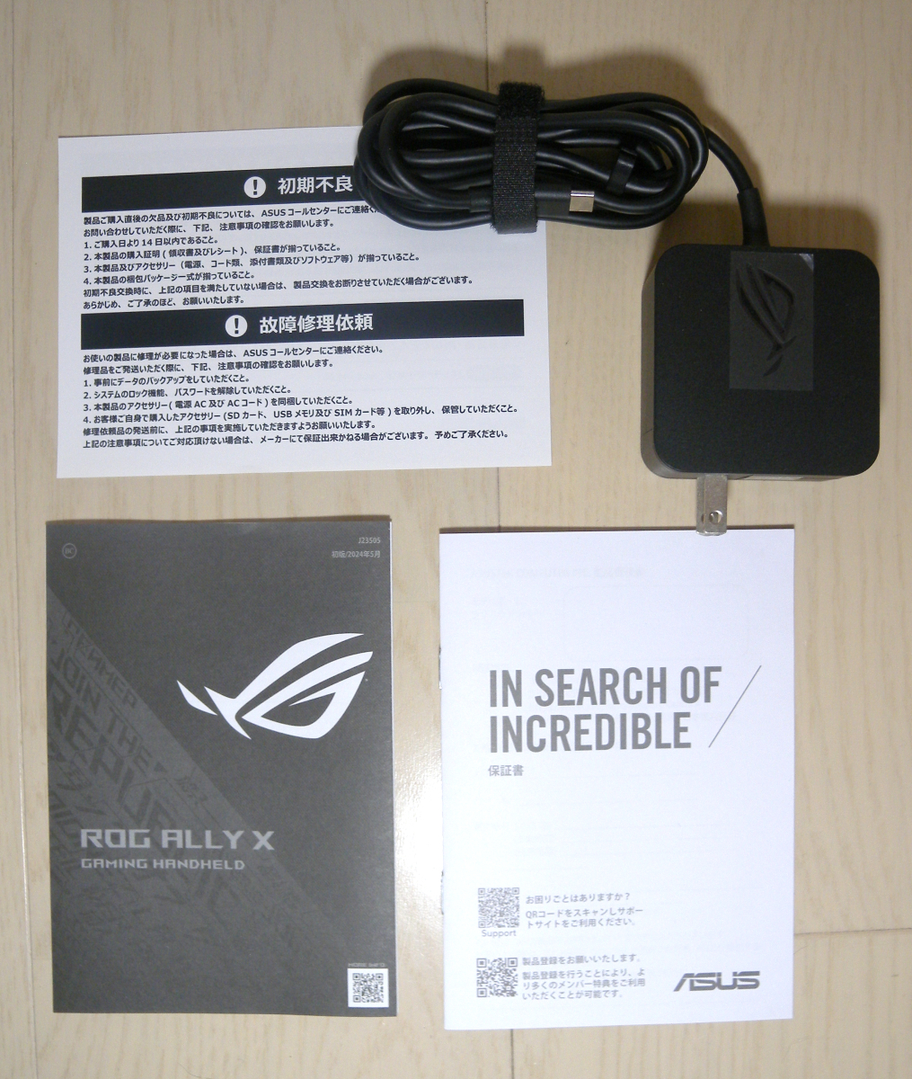 | ●ASUSのROG Ally Xです。 ●他にも色々とゲーム機を持っているので あまり使っていませんでした。そのため 傷や汚れもほとんどなくきれいな状態です。 ●購入してすぐに画面にガラス製の保護フィルム を貼りました。気泡やホコリの混入もなく きれいに貼れたと思うので、そのまま お送りします。 ●元箱や説明書類、ACアダプタなど購入時に 付属していたものは、すべて残してあります。 ●オマケとしてAlly X専用のキャリングケースと 本体保護カバーを付けます。 ●出品にあたり動作確認した後、初期化して います。電源を入れると初期設定画面が スタートします。 | ||